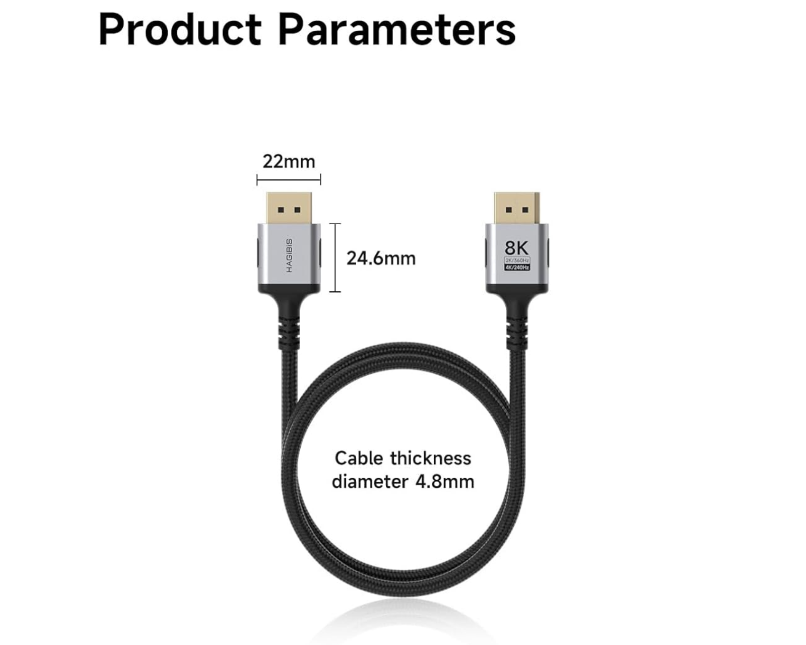 Hagibis 8K DisplayPort-kabel er et højtydende kabel, der understøtter opløsninger op til 8K(7680x4320)@60Hz og 4K@240Hz. Det er beregnet til gamere og brugere, der søger en stabil og høj kvalitet billedeoverførsel. Kabelens overførselshastighed når op til 32.4 Gbps, og det tilbyder støtte for Dynamic HDR, hvilket gør farveniveauerne mere realistiske og klare.Kablet er konstrueret med et fleksibelt, flettet design, der gør det holdbart og modstandsdygtigt over for bøjning. Med en kerne af 34AWG tinnet kobber uden ilt samt aluminium- og grafitbeskyttelse kan kablet modstå signalinterferens og sikre en stabil billedkvalitet. Det er kompatibelt med de fleste grafikkort og skærme med DisplayPort, hvilket maksimerer ydeevnen uden at bruge forlængelser eller adaptere, der kan påvirke signalet negativt.