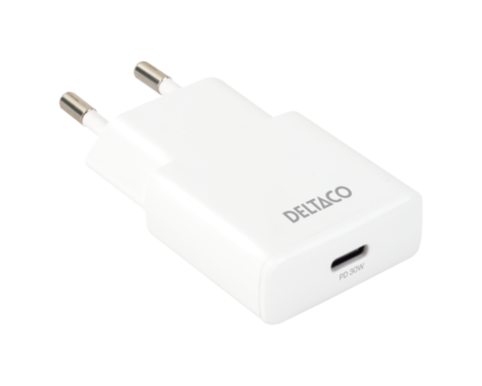30W USB-C væglader er en slank væglader fra Deltaco. Den har en USB-C PD-port med en maksimal effekt på 30 W og understøtter PPS-ladning, hvilket gør, at den kan tilpasse strøm og spænding for at muliggøre mere effektiv opladning af kompatible enheder. Den slanke design gør den ideel til rejser, og dens effektivitet gør den velegnet til smartphones, tablets og mindre bærbare computere.USB-C vægladeren kombinerer Power Delivery-teknologi med PPS (Programmable Power Supply), hvilket betyder, at den løbende opdaterer opladningsstatus og justerer strøm og spænding. Den har flere udgangsniveauer: 5 V / 3 A, 9 V / 3 A, 12 V / 2,5 A, 15 V / 2 A og 20 V / 1,5 A, hvilket giver høj fleksibilitet til at oplade forskellige typer enheder. Når den bruges i 110 V-stik, er den maksimale effekt 20 W. Enheden er udviklet til at minimere varmeudvikling under opladning, hvilket bidrager til at forlænge levetiden på batteriet hos de enheder, der oplades.