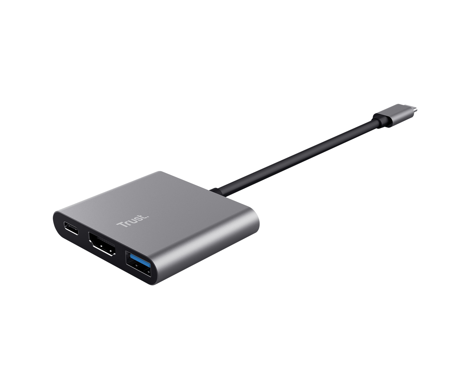 Dalyx Multiport er en 3-i-1-adapter fra Trust, som giver tre nye porte til tilslutning af forskellige enheder. Den tilbyder HDMI, LAN samt en USB-C- og en USB-port, hvilket gør det muligt at tilslutte flere enheder samtidig uden problemer. Med støtte for 4K-opløsning ved 30Hz og en overførselshastighed på op til 5Gbps, passer den godt til både arbejdsmiljøer og underholdningsbrug.Adaptern har en kompakt størrelse og vejer kun 41 gram, hvilket gør den nem at tage med i tasken. Den har en 100W USB-C opladerport, som muliggør hurtig opladning af tilsluttede enheder. Plug-and-Play-funktionen betyder, at der ikke kræves drivere eller software, så brugeren hurtigt kan komme i gang med sine enheder. Den stilige design gør, at den passer ind i både professionelle og uformelle sammenhænge.