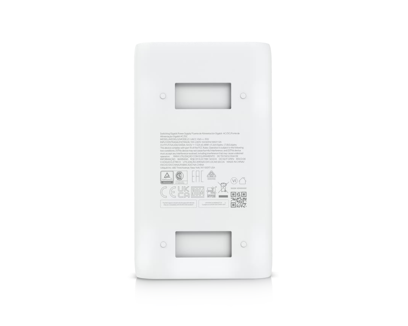 Ubiquiti UniFi PoE++ Injector 60W er en PoE-injektor, der leverer op til 60W PoE++-effekt og bitrater på op til 10Gbps over et enkelt Ethernet-kabel. Den er designet til brug med højtydende netværksudstyr, herunder Wi-Fi 6- adgangspunkter og PoE-kameraer, hvilket forenkler installationsprocessen ved at reducere behovet for separate strømforsyninger. Produktet er konstrueret til at understøtte forskellige installationsmiljøer, herunder både indendørs og udendørs.Enheden har et kompakt design med målene 106 × 63 × 34 mm, hvilket gør den let at integrere i eksisterende systemer. Med et indgangsspændingsområde på 100–240V og en automatisk AC-adapter er den velegnet til globale installationer. Kun en RJ-45 port muliggør enkel rackmontering og minimal kabling. Injektoren leverer 54V på PoE++-udgangen med en strømkapacitet på 1,12A, hvilket minimerer risikoen for spændingsfald over længere kabeltræk. Produktet er certificeret i henhold til CE, FCC, IC, UL, UKCA, KC, CCC og RoHS.