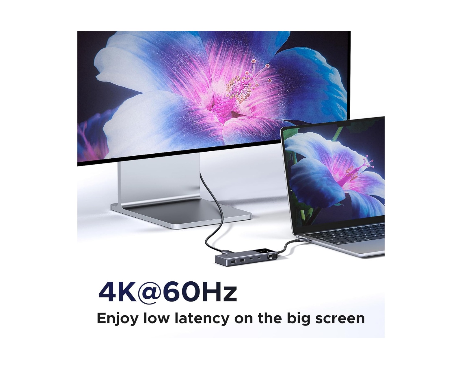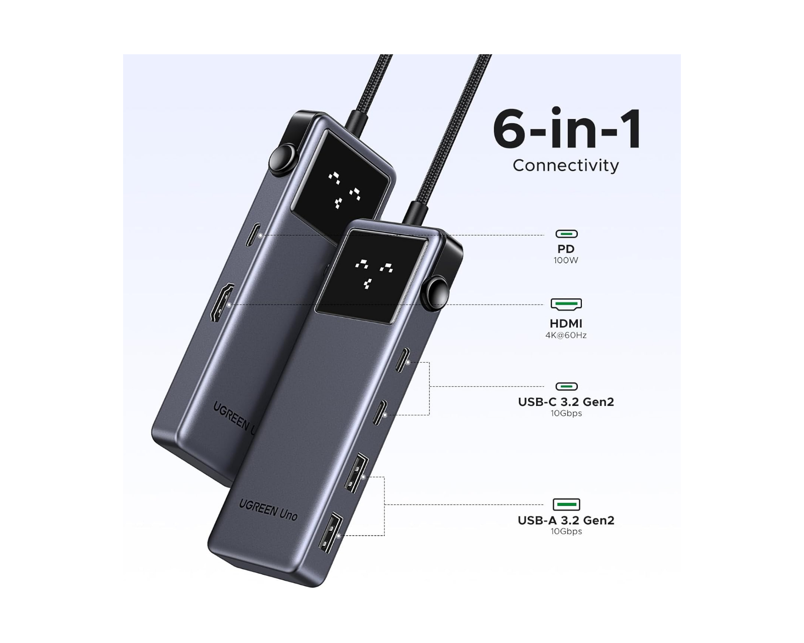 Uno USB-C Hub er den ultimative løsning til at udvide din enheds funktionalitet. Med en imponerende overførselshastighed på op til 10 Gbps og understøttelse af 4K-opløsning ved 60Hz, leverer denne hub ydeevne i topklasse. Den inkluderer 2x USB-A 3.2-porte, 1x HDMI, 2x USB-C 3.2 og 1x PD-port med 20V/5A til hurtig opladning.