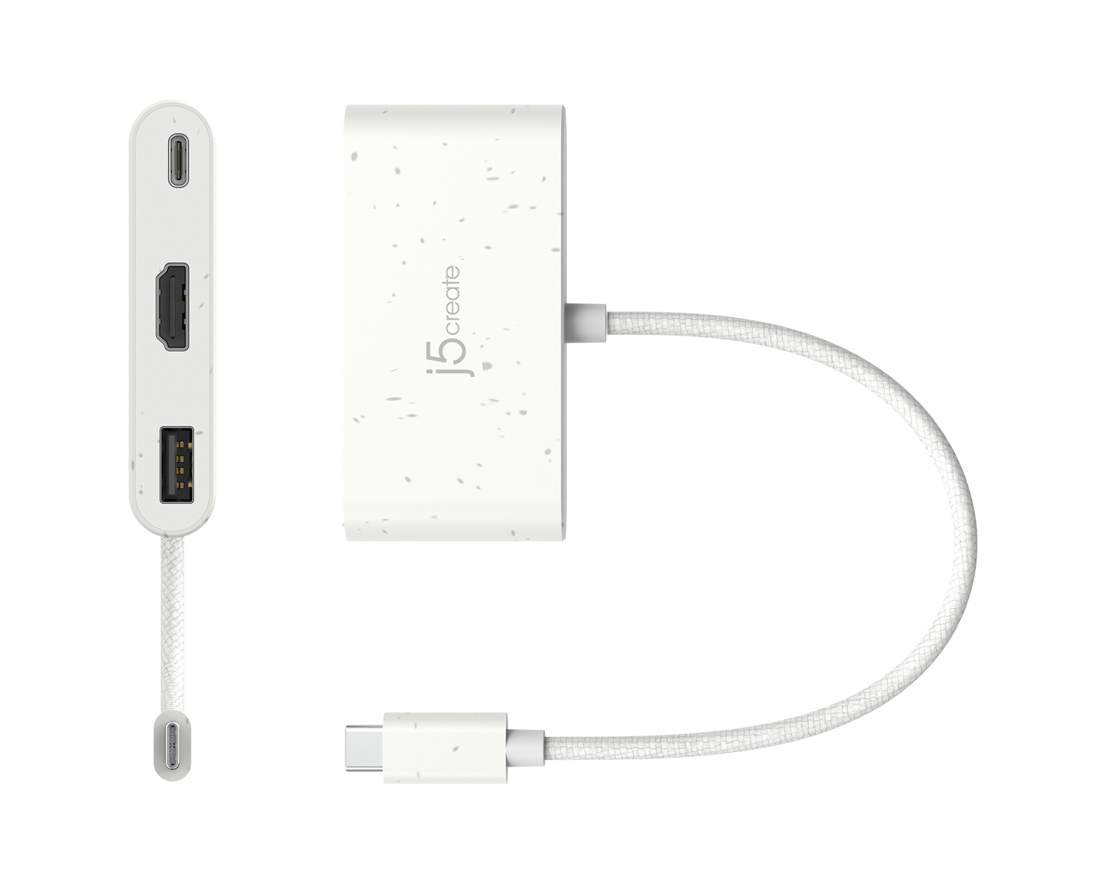 JCA379E fra j5create er en alsidig miljøvenlig USB-C til HDMI & USB Type-A med strømforsyningsadapter. Denne enhed introducerer ekstra funktionalitet til din bærbare computer ved at tilbyde en ekstra USB Type-A-port, HDMI-skærmunderstøttelse og en USB-C-port, der muliggør opladning via din USB-C-port. Oplev hurtige dataoverførselshastigheder på op til 5 Gbps med USB Type-A SuperSpeed porten. HDMI-porten forbedrer din seeroplevelse med opløsninger på op til 4K. Med en USB-C Power Delivery 3.0-opladningsport giver den effektiv opladning på op til 100W, når den er tilsluttet en USB-C-strømadapter.- Miljøvenlig, lavet af genbrugsmateriale
