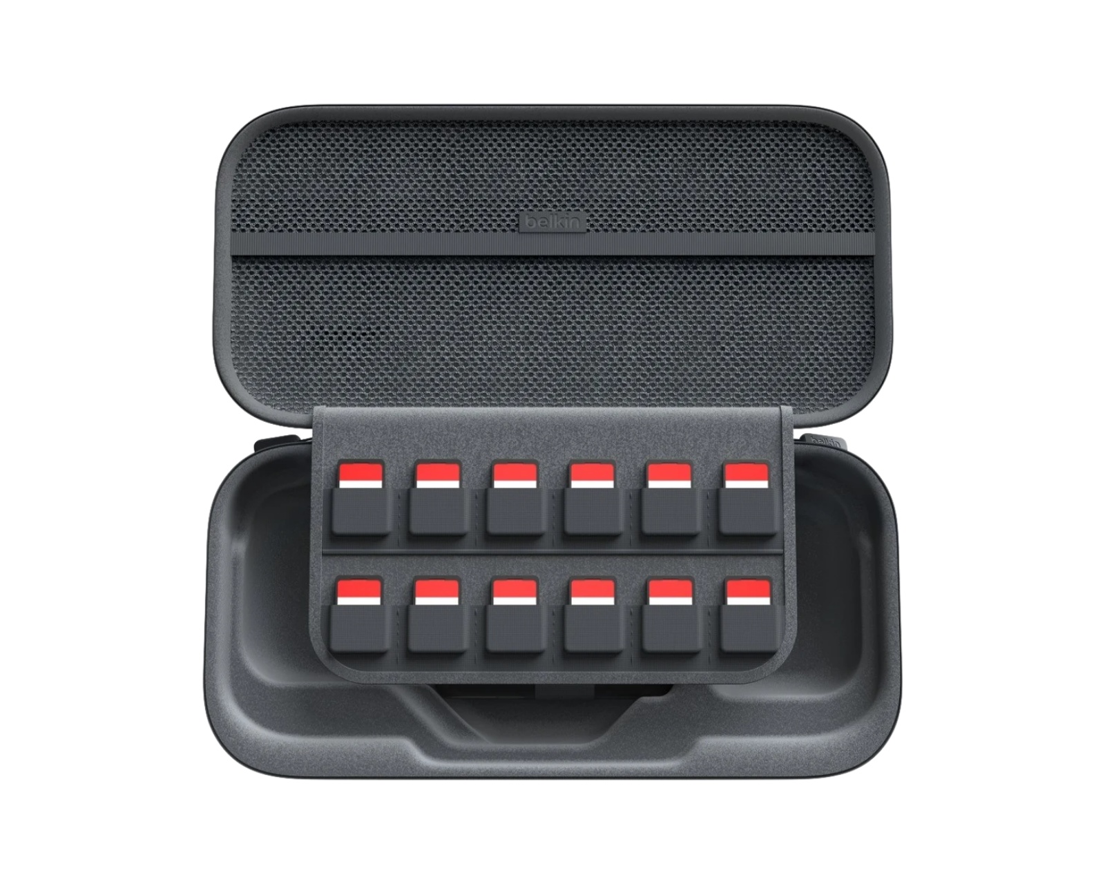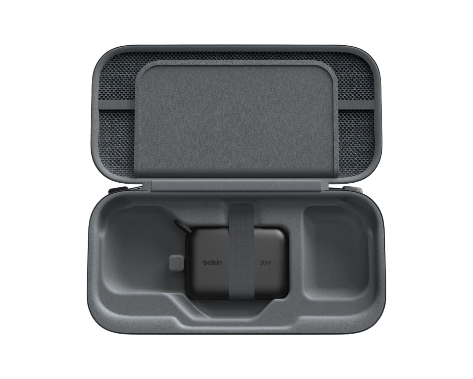 Belkin Switch 2 Charging Case med Powerbank er et ladetui til Nintendo Switch 2, der kombinerer beskyttelse og strømforsyning. Det inkluderer en aftagelig powerbank på 10.000 mAh, der kan oplade enheden op til 1,5 gange, hvilket gør det praktisk til lange spilsessioner og rejser. Etuiet har også plads til spillekort og et støtteben til bordspil, hvilket letter brugen hvor som helst.Etuiet er lavet af vandafvisende stof og har et robust ydre skal, der beskytter mod ridser og stød. Den interne lomme til spillekort rummer op til ti stykker. Enheden har også en LCD-skærm, der viser ladestatus, hvilket sikrer, at brugeren altid er opmærksom på den resterende batterilevetid. Samtidig inkluderer etuiet et skjult rum til AirTag for at muliggøre sporing.
