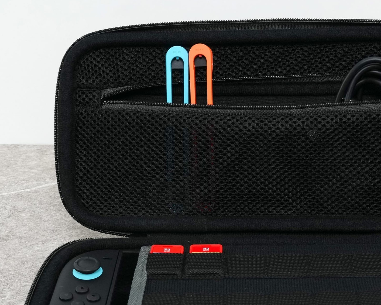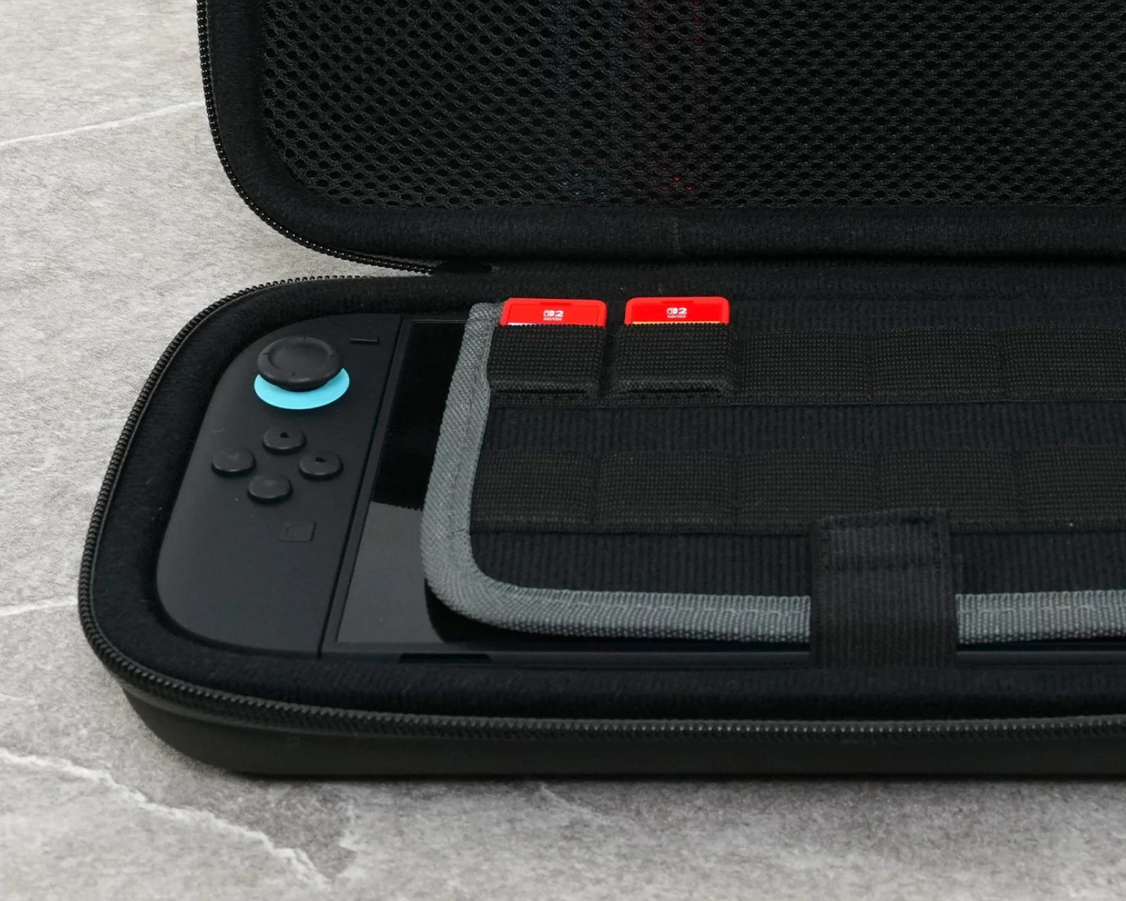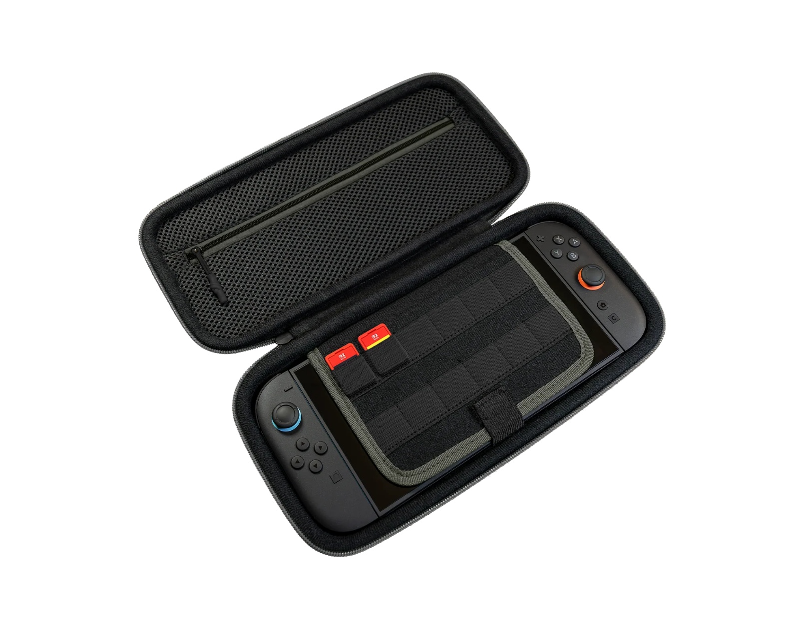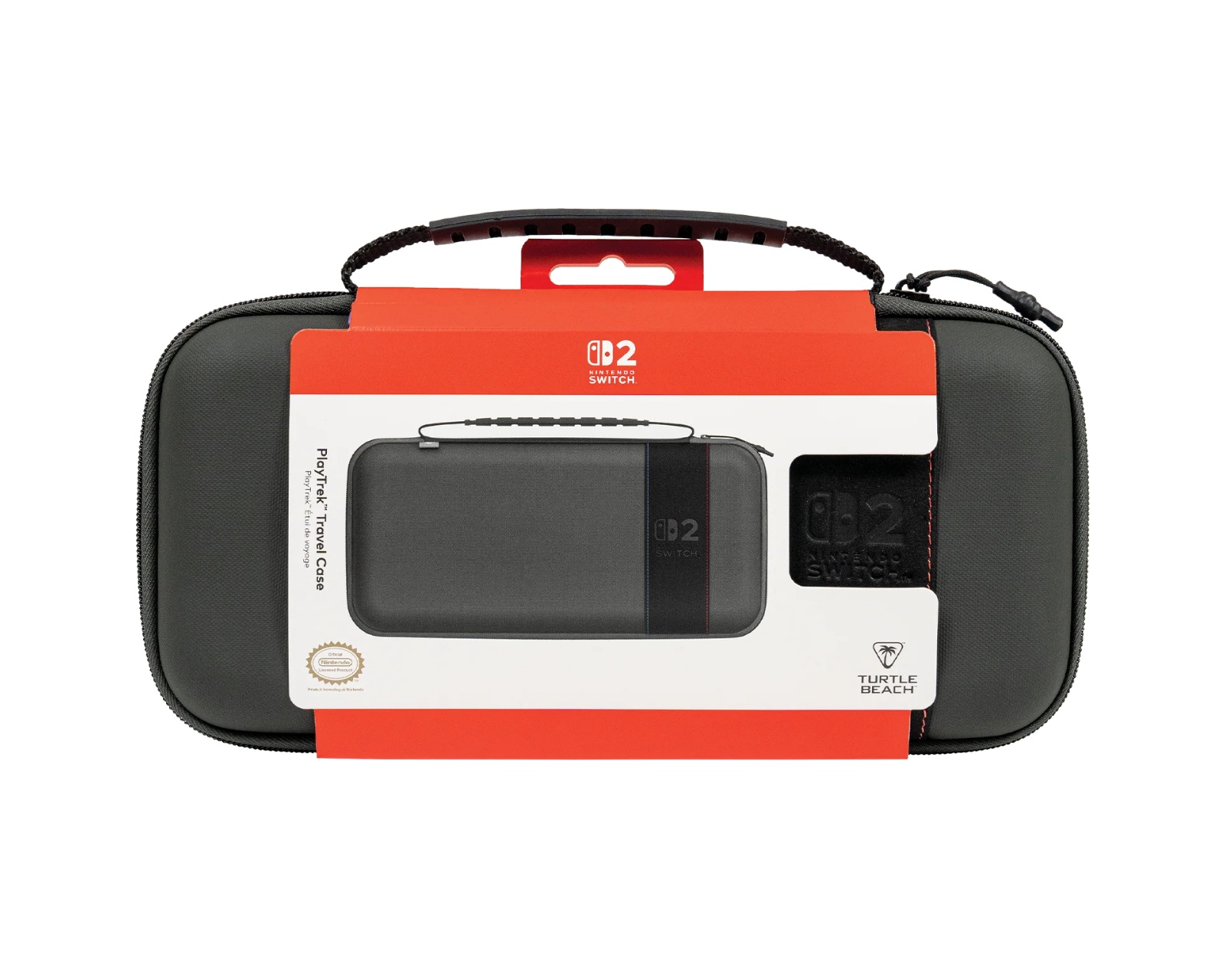 PlayTrek Rejsetaske er en bærbar taske fra Turtle Beach, designet til at beskytte Nintendo Switch™ 2, Nintendo Switch™ og Nintendo Switch™ - OLED Model. Taskens design kombinerer funktionalitet med holdbarhed for at sikre, at konsollen er beskyttet under rejser. Med en vægt på 0,83 lbs (378 g) og mål på 11,81” x 6,10” x 2,28” (300 mm x 155 mm x 58 mm) er det en kompakt løsning for spillere på farten.Tasken har en struktureret EVA-moldet skal, der er dækket med TPU-belagte polyester, hvilket bidrager til et højt niveau af stød- og slidstyrke. Det polstrede indre rum beskytter skærmen mod ridser, mens en indbygget netlomme tilbyder opbevaring til mindre tilbehør som kabler eller ørepropper. Dedikerede kortpladser sikrer, at spillekort holdes organiseret. Et forstærket håndtag giver et komfortabelt greb for nem bæring.