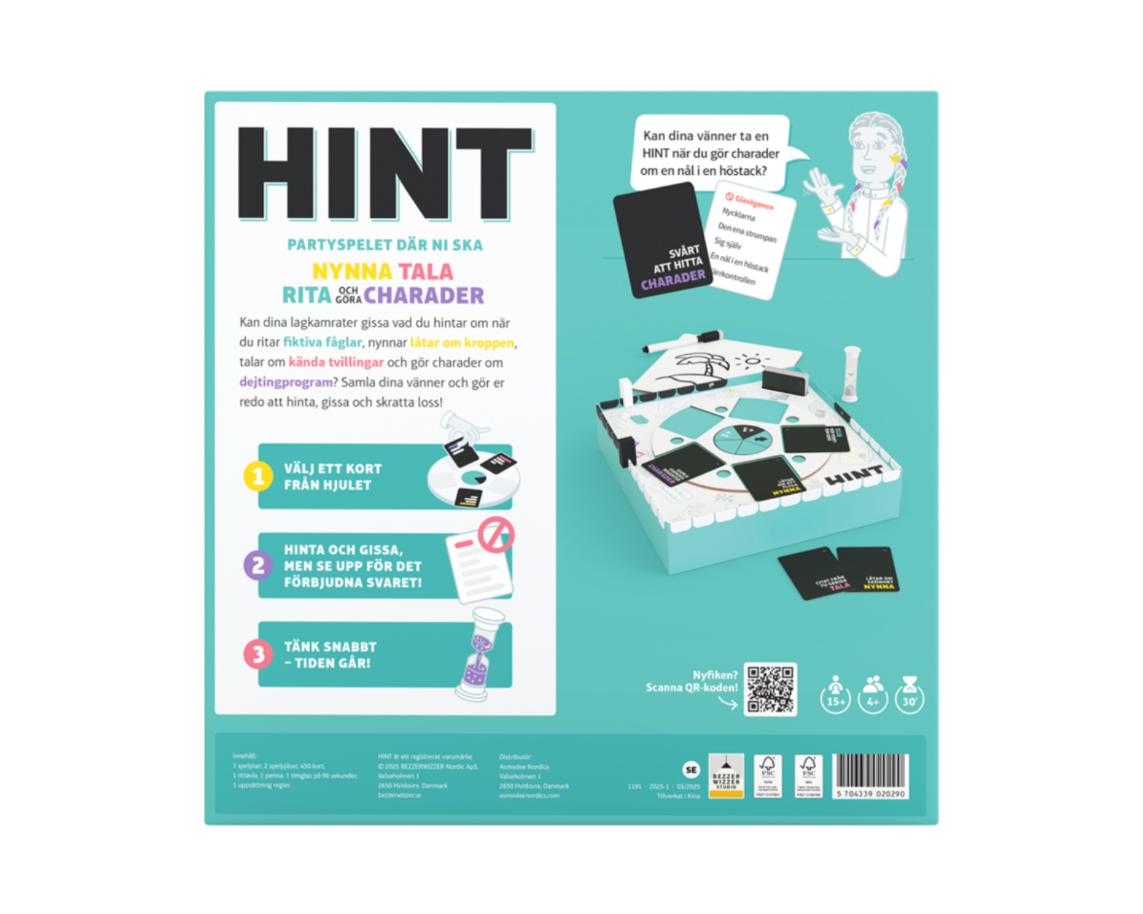 HINT Classic er et selskabsspil, der tilbyder et moderne twist på den klassiske spiloplevelse. Med hundredevis af nye kort og et opdateret design giver dette spil spillerne mulighed for at deltage i aktiviteter som at tegne, nynne og lave charader. Spillet er velegnet til 4 eller flere deltagere, med en aldersanbefaling på 15 år og derover. HINT Classic kan bruges til både privat samvær og større sociale arrangementer.HINT Classic består af 450 nye kort, der er opdelt i fire forskellige kategorier: charader, tegne, tale og nynne. Spillere opfordres til hurtigt at gætte på deres medspilleres ledetråde inden for en angivet tidsramme. Det innovative og følsomme design sigter mod at skabe en inkluderende og underholdende atmosfære. Kortene omfatter en række emner og temaer, hvilket sikrer, at ingen omgange bliver den anden ens.