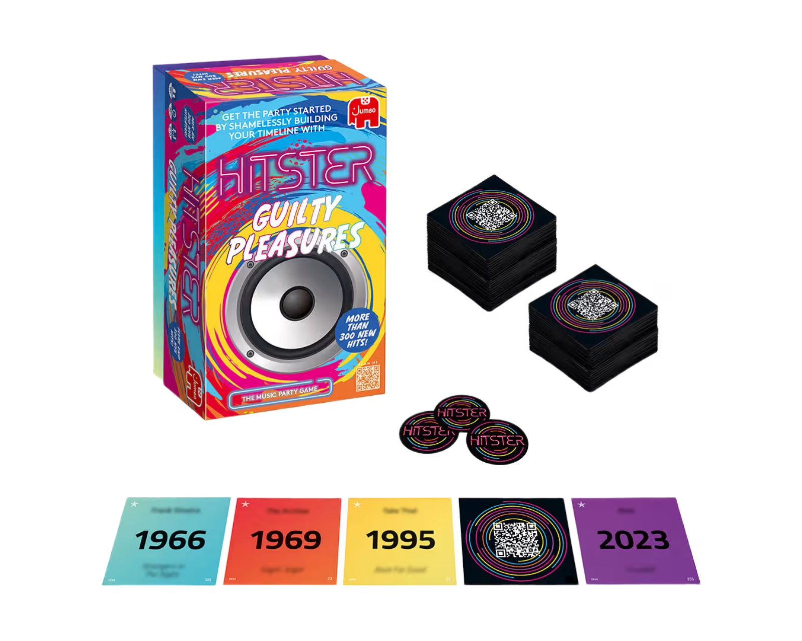 Hitster Guilty Pleasures er et brætspil, der kombinerer nostalgi med festligt spil. Spillet fokuserer på de mest pinlige fornøjelser fra de seneste årtier, hvilket gør det til en underholdende aktivitet for voksne og unge. Målene er enkle; spillerne bygger en tidslinje af sange, og den første spiller, der samler 10 hits, udnævnes til HITSTER. Spillet kan enten spilles uafhængigt eller sammen med det originale Hitster-spil, hvilket giver fleksibilitet til forskellige spilsessioner.Hitster Guilty Pleasures har en gennemtænkt spilleoplevelse med et layout, der er let at følge. Spilmaterialet er af høj kvalitet, og designet understøtter en intuitiv spilgang. Sangene, der indgår, er udvalgt for at maksimere genkendelse og underholdning, hvilket gør, at spillere i alle aldre kan deltage og nyde. Med sin blanding af musik og konkurrenceånd har det potentiale til at skabe mange sjove stunder, hvor alle kan synge med og grine af de nostalgiske valg.