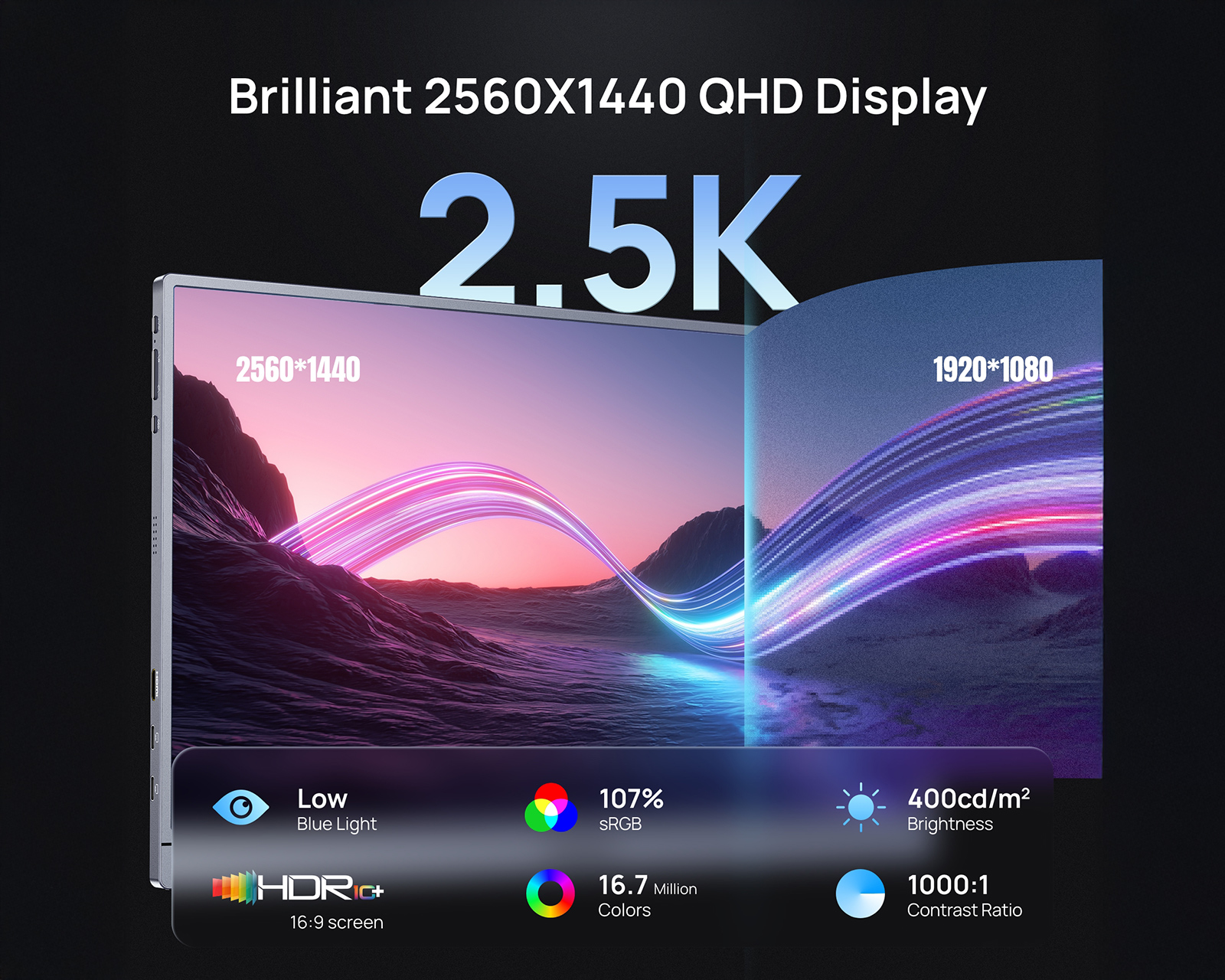 Z3FC 16,1" 180Hz QHD er en bærbar skærm fra Arzopa, som kombinerer mobilitet med høj ydeevne. Den 16,1-tommer store IPS-skærm tilbyder en imponerende WQHD-opløsning på 2560x1440 og en opdateringsfrekvens på 180 Hz, hvilket garanterer flydende billedgengivelse og skarpe detaljer. Med to USB Type-C-porte med DisplayPort og strømforsyning samt en Mini HDMI 2.0-port får du fleksible forbindelsesmuligheder til dine enheder.Skærmen er designet til gamere, der har brug for et høj kvalitet billede, uanset hvor de befinder sig. Takket være farveskalaen på 107% sRGB og et kontrastforhold på 1000:1, kan brugerne nyde levende farver og høj billedkvalitet. Den har også lavt blåt lys og flimmerfri teknologi for at reducere øjenbelastning under lange spilsessioner. Med en lysstyrke på 400 nits, 2x 1W stereo højttalere og en integreret kickstand med portrætlæg, er denne skærm praktisk og tilpasningsdygtig.