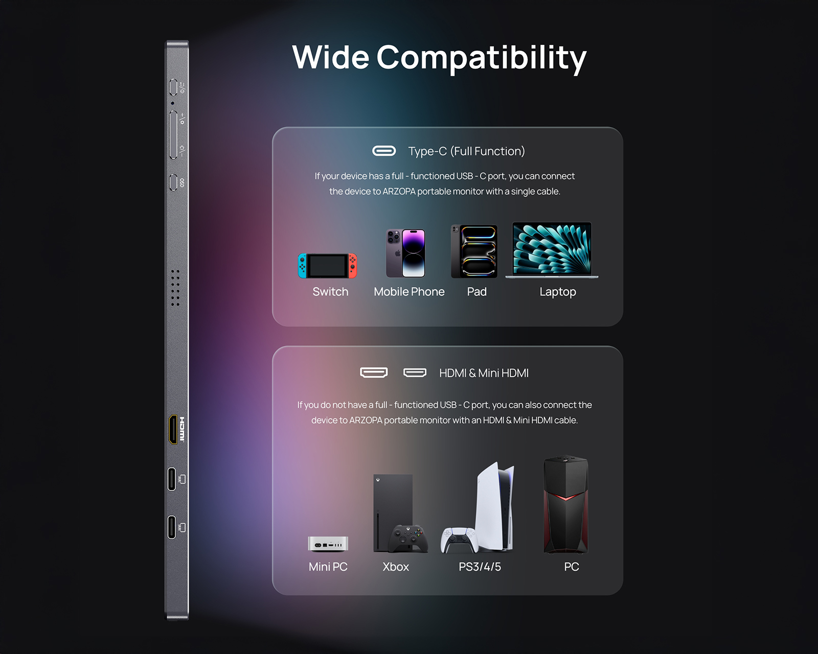Arzopa er et globalt teknologibrand med fokus på bærbare skærmløsninger, der kombinerer mobilitet, ydeevne og visuel kvalitet. Virksomheden udvikler avancerede bærbare skærme og digitale displayprodukter, som styrker produktivitet, underholdning og kreative arbejdsprocesser – uanset placering.