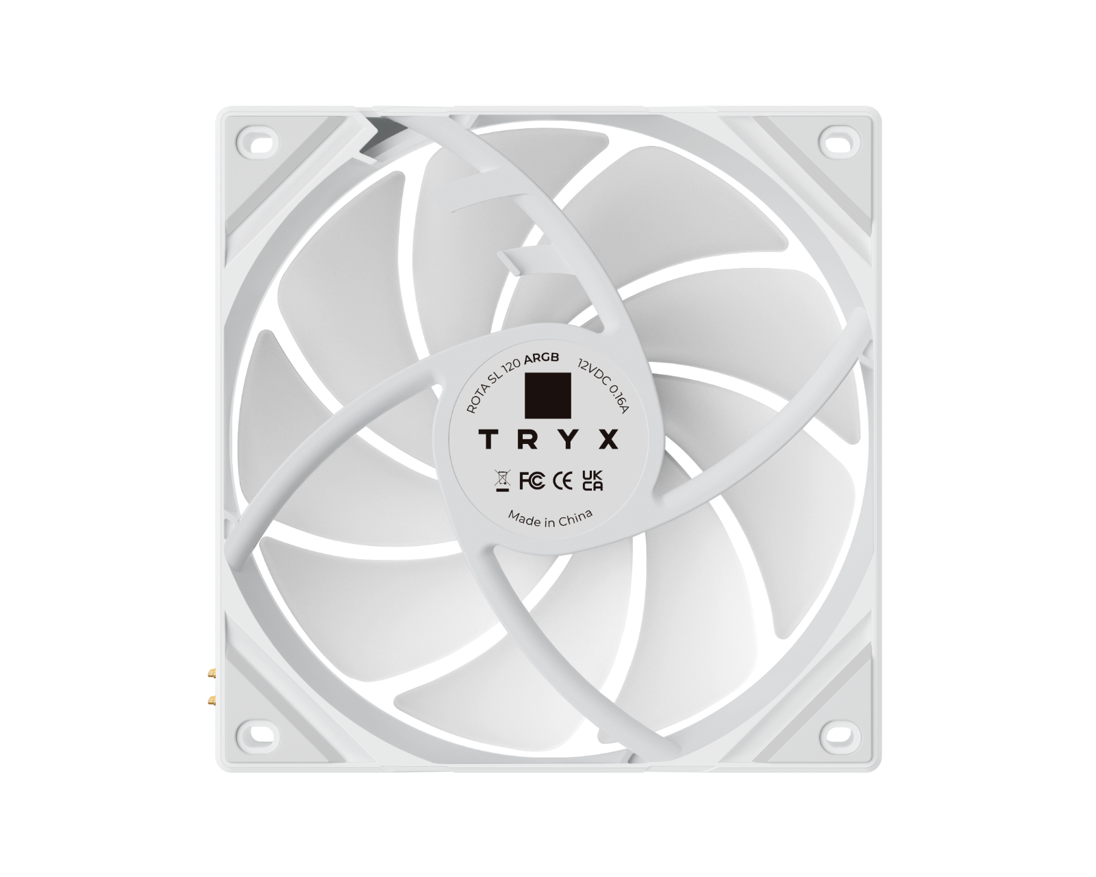 ROTA SL ARGB 120mm er en chassiventilator fra TRYX, som tilbyder effektiv luftstrøm og tilpasselig belysning. Blæseren har en indbygget Gen2 ARGB-belysning, der kan skræddersyes til at skabe visuelle lysforestillinger i et PC-kabinet. Med standardmålene 120x120x25 mm og en maksimal rotationshastighed på 1850 RPM, er den passende til forskellige typer computerbyggerier. Lydniveauet holdes under 28,87 dB(A) selv ved fuld belastning, hvilket gør den egnet til et stille driftsmiljø.ROTA SL ARGB 120mm er fremstillet af kobber, metal og polybutylen-tereftalat, hvilket bidrager til en stabil byggekvalitet og lang holdbarhed. Blæseren bruger en magnetisk kontaktløsning med pogo-pins for lettere kabelhåndtering og daisy chaining. For at minimere vibrationerne er blæseren udstyret med fire lydabsorberende puder. Med et statisk tryk på 2,49 mmAq og en luftstrøm på 65,64 CFM sikrer denne blæser effektiv køling af forskellige komponenter i de fleste standardchassiser.