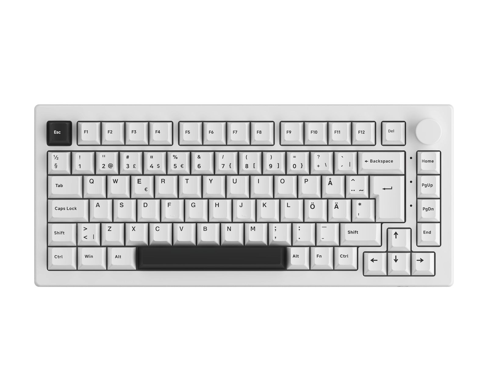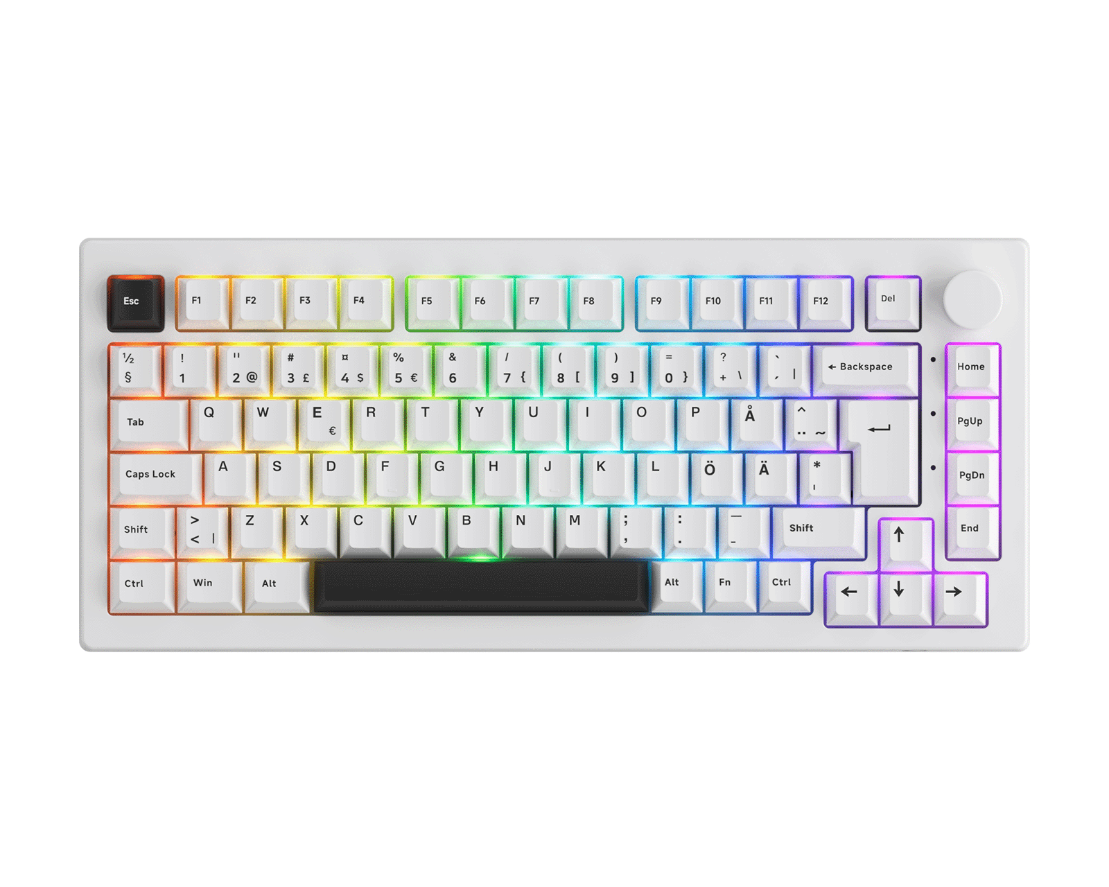 Hot swappable funktionalitet og dens innovative gasket mount giver en blød og dæmpet skriveoplevelse. Den smidige roterende knap tilbyder hurtig justering af lys og volumen, hvilket optimerer arbejdsgangen. Dens PBT double shot-taster sikrer langvarig kvalitet og æstetik.