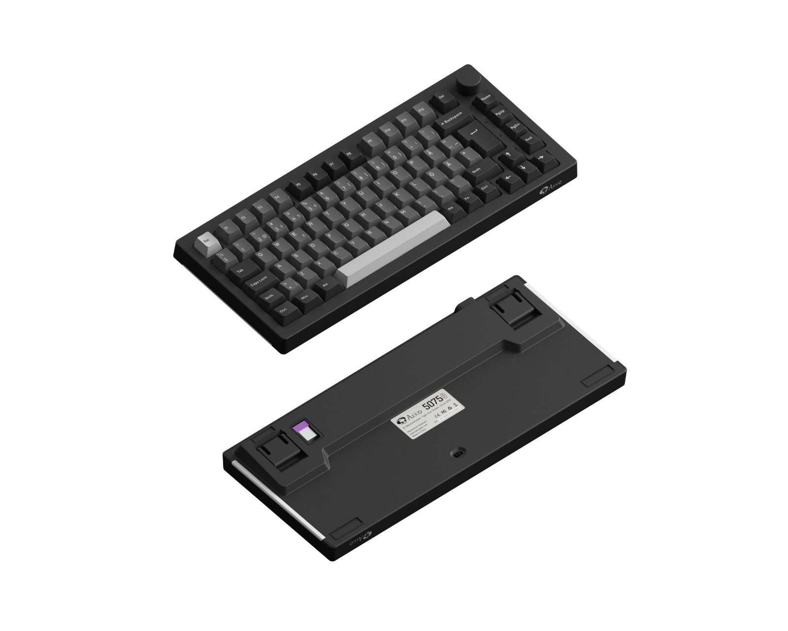Akko 5075B Plus-S Black & Silver Trådløst Tastatur - Sort [V3 Lavender Purple Pro] (DEMO)