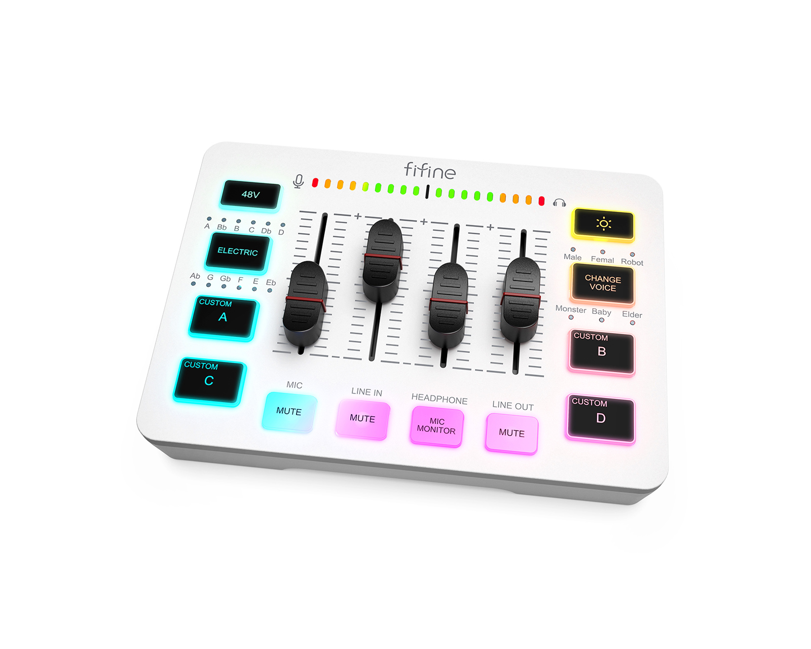 Fifine AMPLIGAME SC3 Gaming USB Mixer - Mixerpult til Streaming & Podcast - Hvid (DEMO)