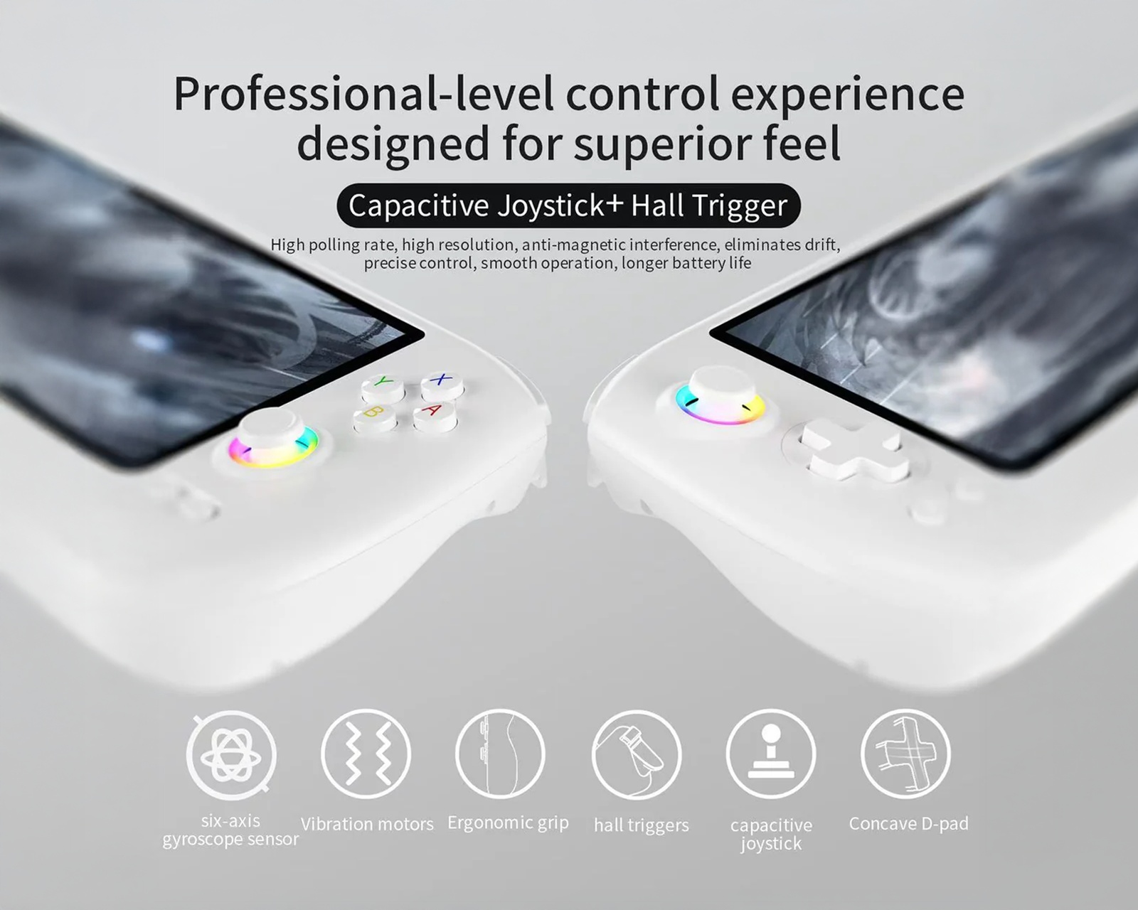 Denne konsol er udstyret med en ottekernet processor og en Mali-G615 grafikkprocessor, som giver hurtig og glat grafikrendering. Med 12 GB LPDDR5X RAM og 256 GB UFS 4.0 lagerplads kan brugerne gemme mere end 8000 spil. RG557 kører Android 14 og understøtter både WiFi 6E og Bluetooth 5.3 for stabil trådløs forbindelse. Et 5500 mAh polymer-lithiumbatteri giver cirka 8 timers brug, og konsollen har en omfattende opstilling af porte inklusive USB Type-C og 3,5 mm lydudgang til headset. Med RGB-lyseffekter og en indbygget seks-akslet gyroskopsensor tilbyder den også yderligere funktionalitet for en mere dynamisk spilleoplevelse.