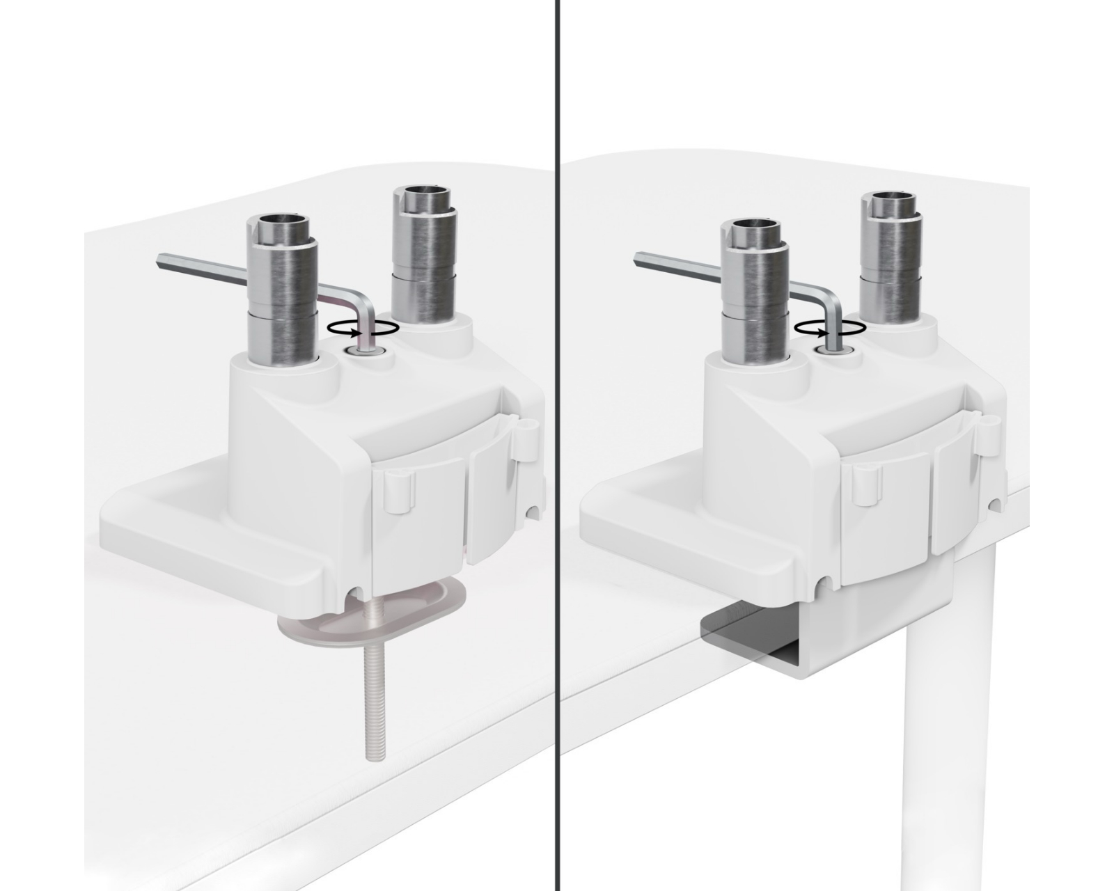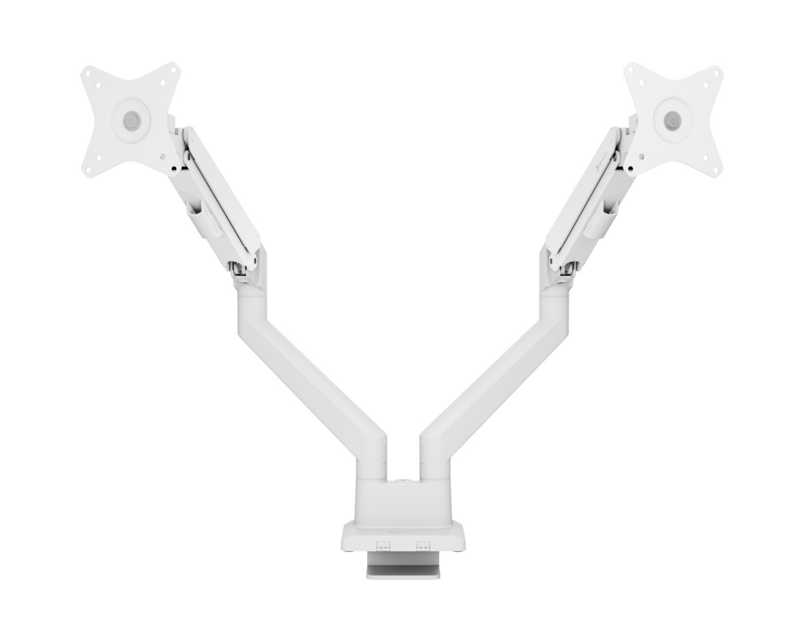 Skärmstativet er fremstillet af stål og tilbyder høj holdbarhed og stabilitet. Med muligheden for tilt mellem +45° og -45° og et svängområde på +90° til -90°, kan vinklen på hver skärm justeres for at opnå en ergonomisk korrekt position. Rotation sker i 360 grader, hvilket giver stor fleksibilitet ved anvendelse. Montering sker med en klämme, hvilket letter installationen på skrivebordet. Stativet har også indbygget kabelhåndtering for at holde arbejdsområdet på en pæn og ledningsfri måde.