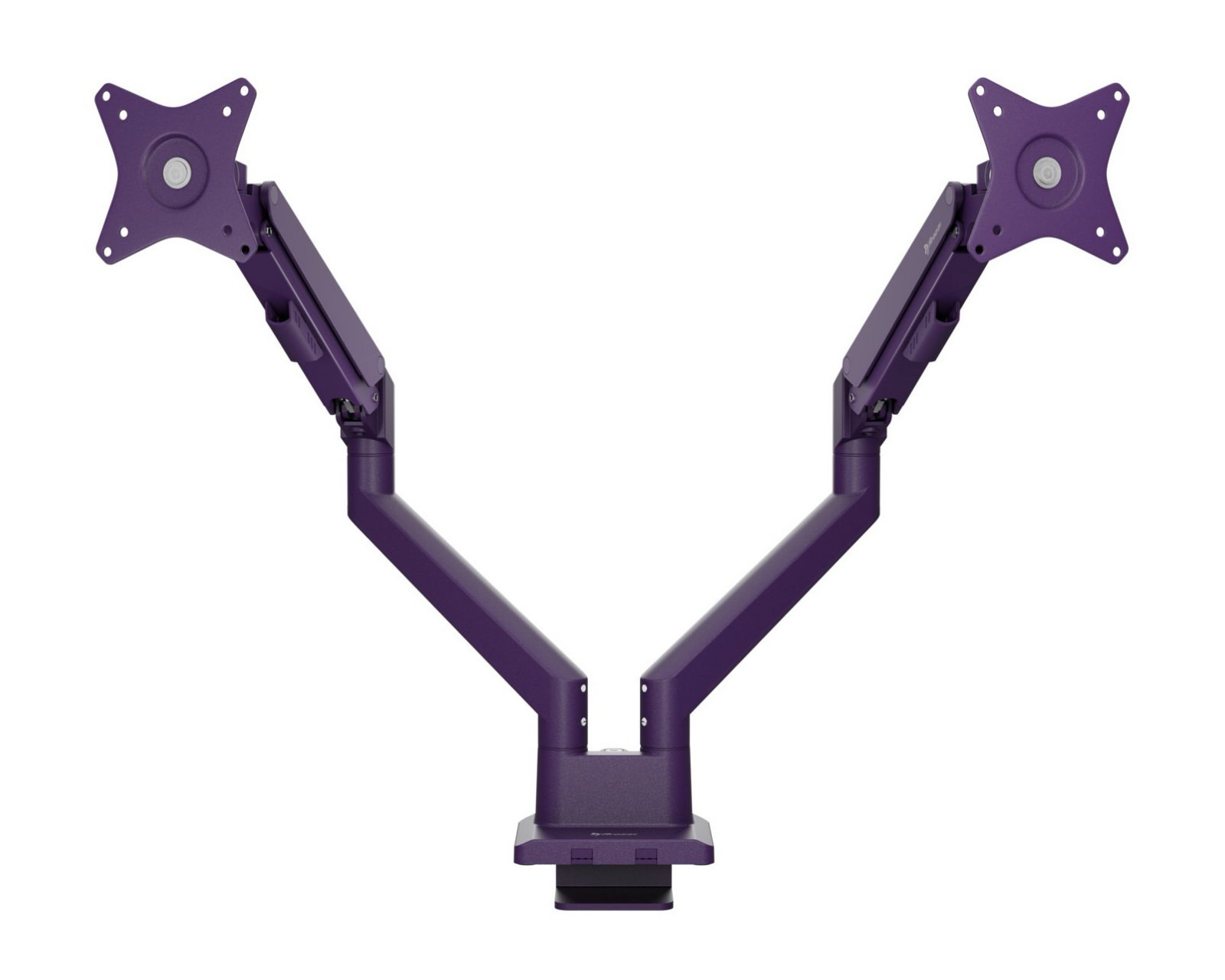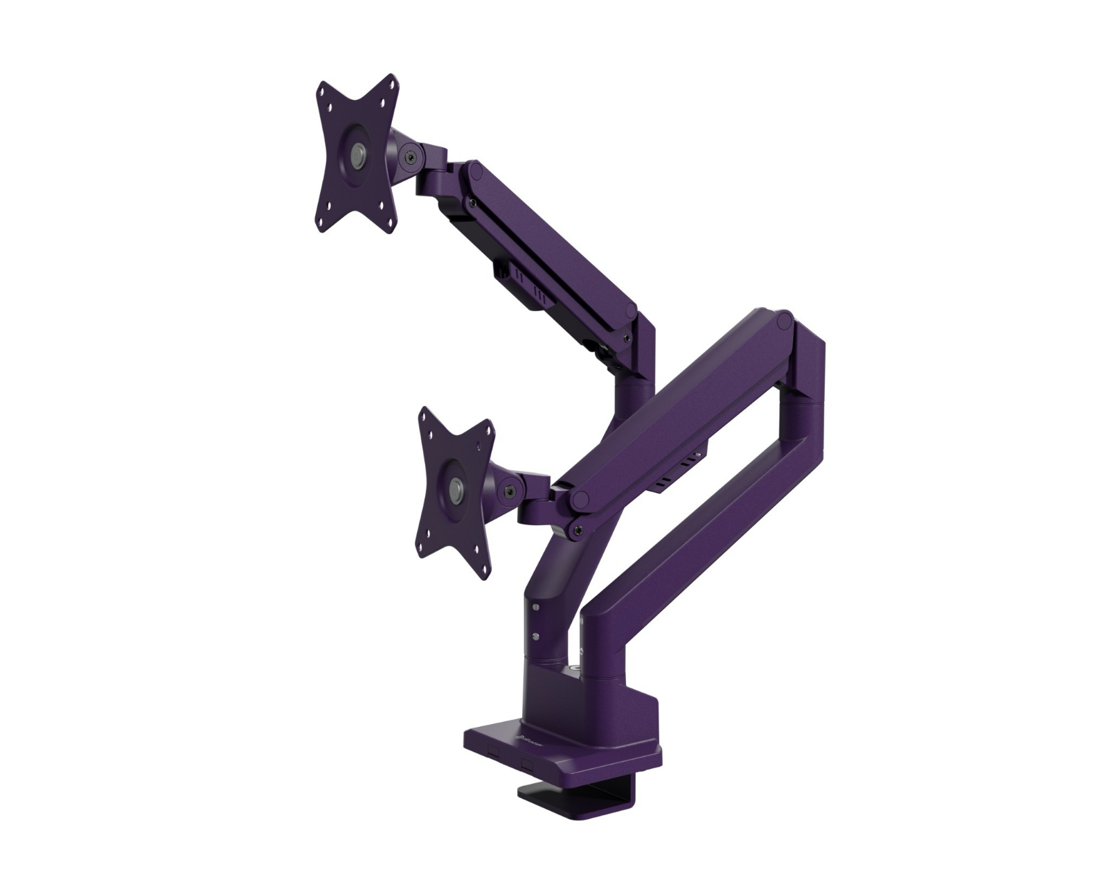 Stativet er lavet af stål, hvilket bidrager til dets holdbarhed og stabilitet. Klæbemonteringen letter installationen på skrivebordet uden at skade overfladen. Med svingomfanget på +90° til -90° og tiltingsmuligheder mellem +45° og -45° kan skærmene justeres for at passe til brugerens behov. Rotation på 360° muliggør nem omstilling mellem liggende og stående position for skærme. Derudover inkluderer stativet kabelhåndtering for en bedre og mere organiseret arbejdsplads.