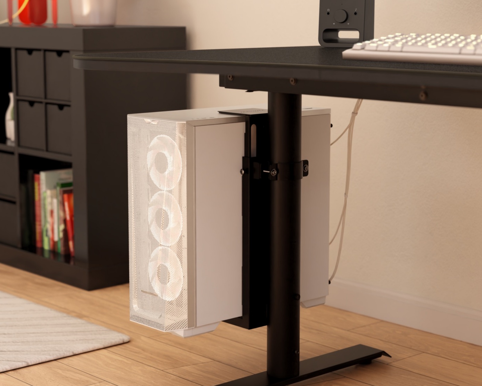 DEMO: Retourkøb og testeksemplar. God stand.PC-beslaget er et produkt fra Arozzi, der er designet til at montere en computer på en sikker måde. Dets design frigør gulv- og skrivebordsplads, hvilket gør det til en ideel funktion for højdejusterbare og sænkbare skriveborde som Arena Moto. Med en justerbar størrelse, stærk stålstruktur og beskyttende polstring tilbyder dette beslag en funktionel og beskyttende løsning til at holde dit setup organiseret og rent.