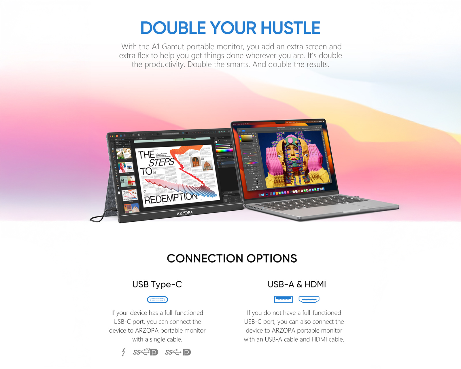 Arzopa er et globalt teknologibrand med fokus på bærbare skærmløsninger, der kombinerer mobilitet, ydeevne og visuel kvalitet. Virksomheden udvikler avancerede bærbare skærme og digitale displayprodukter, som styrker produktivitet, underholdning og kreative arbejdsprocesser – uanset placering.