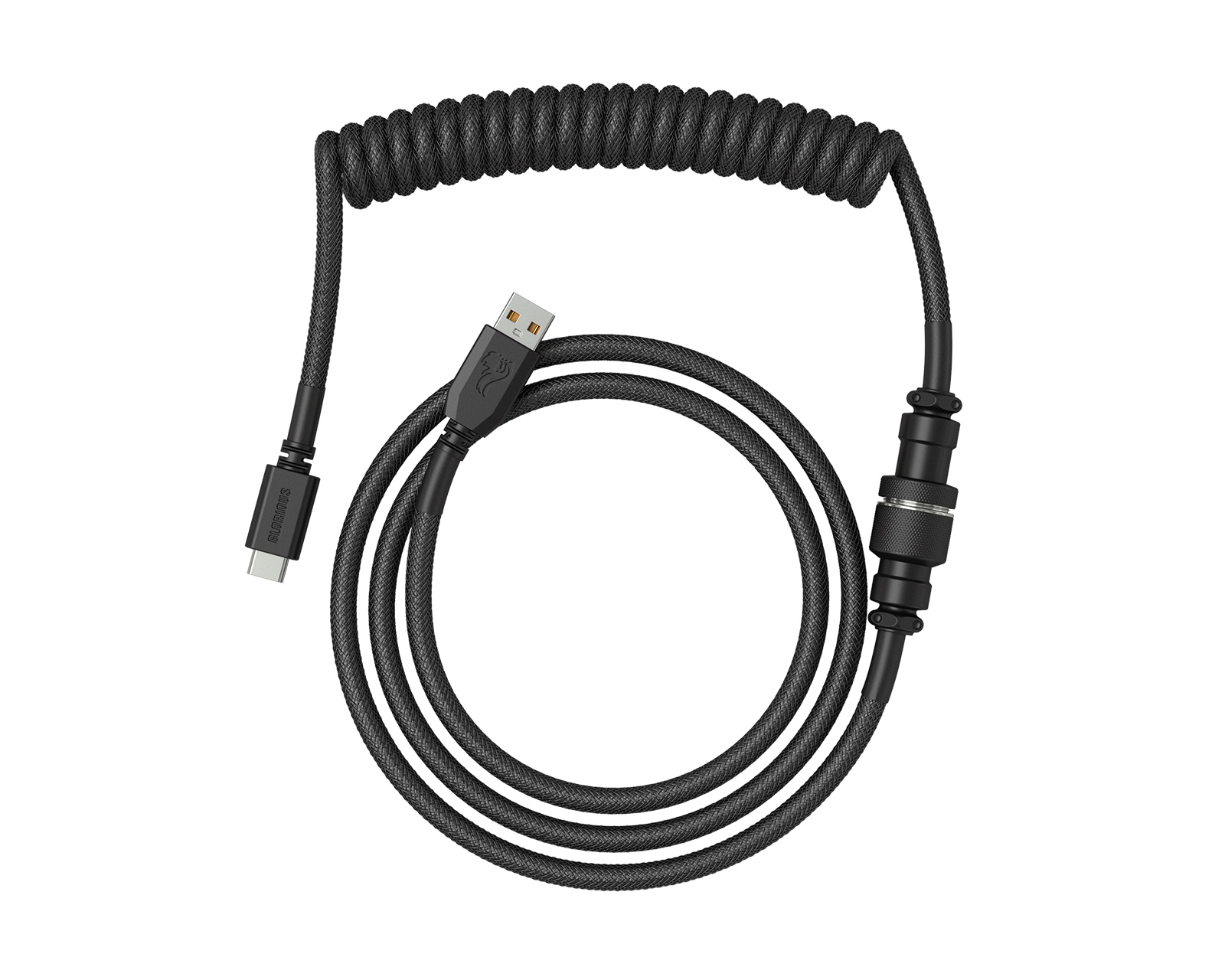 Pæn, funktionel og bygget til at holde. Knob og tangles hører fortiden til med Glorius' smukke, dobbeltflettede viklede kabler designet til at opretholde top "ophæng" og optimal fleksibilitet. Et kraftfuldt, 5-benet aviatorstik forbinder de viklede og lige sektioner for en hurtig og nem forbindelse. Glorious coiled Cables fås i en række forskellige farver, der smukt fremhæver dit skrivebord og dit tastatur.- Forgyldt USB 2.0 kabel