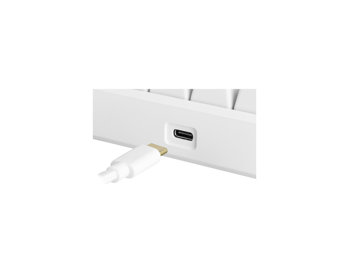 Stilfuldt mekanisk tastatur i hvidt design. Det er det perfekte tastatur til dig, der elsker LANeller simpelthen til dig, der ønsker at maksimere skrivebordspladsen - uanset årsag maksimerer dette tastatur din spilleplads, så du kan få mere plads til en mus og musemåtte, så tastaturet aldrig er en hindring for dine musebevægelser. Aftageligt 1,8 m USB-C-kabel til et fleksibelt og bærbart tastatur.