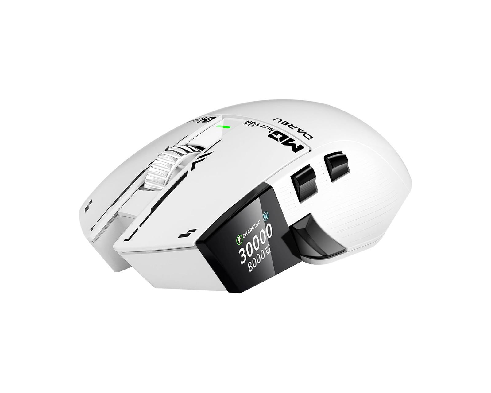 Dette sammen med et stort 930mAh batteri gør, at denne trådløse mus ikke behøver at blive opladet hele tiden. For endnu færre vibrationer og støj ved knaptryk har de tilføjet Poron-materiale. Konfigurer nemt TFT-skærmen på musens side. Køb din Dareu A980Pro Max Wireless Gaming Mouse og oplev både ydeevne og fleksibilitet.