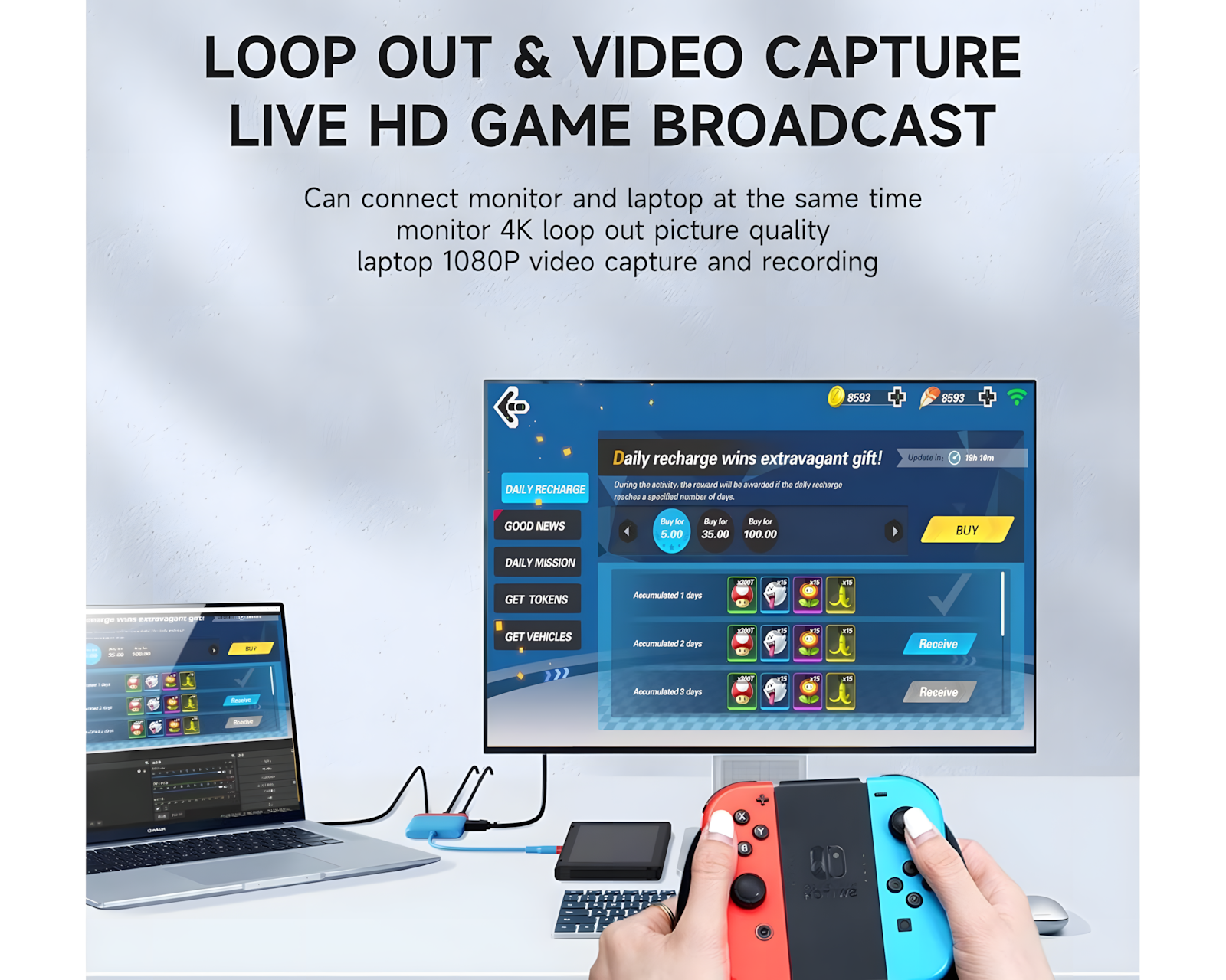 DEMO: Genkøb og testeksemplar. God stand.En videooptagelsesenhed fra Hagibis, der muliggør optagelse og livestreaming i høj kvalitet. Produktet understøtter 1080p-video med 60 Hz opdateringsfrekvens og har flere tilslutningsmuligheder til forskellige enheder. Den er kompatibel med Nintendo Switch, iPhone 16 og 15 Pro Max samt Quest 3 og er skræddersyet til gamere og indholdsskabere, der kræver stabil og effektiv videooptagelse.