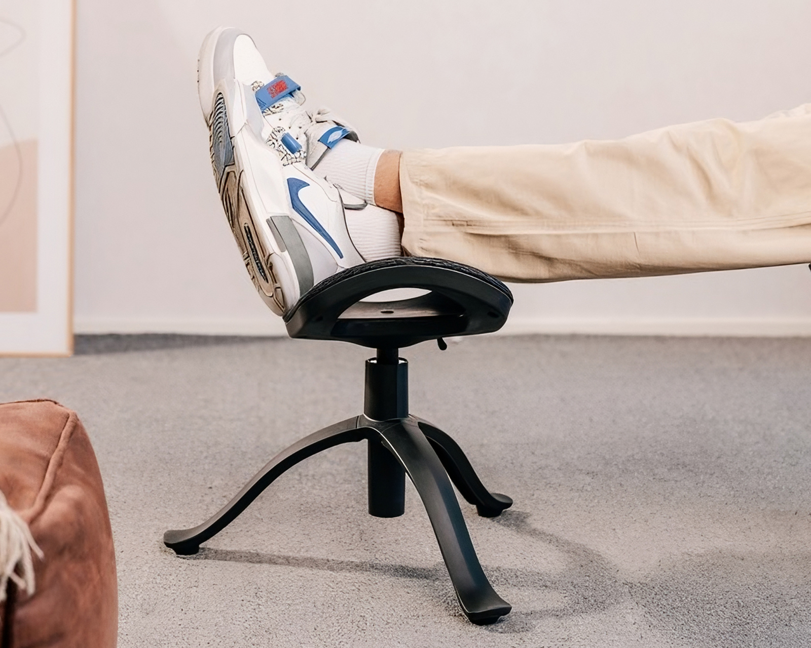 Uanset om du sidder bag et skrivebord eller ligger derhjemme, er MaxMount fodstøtten din perfekte ledsager til komfort, der passer til dig. Juster. Fold. Slap af.