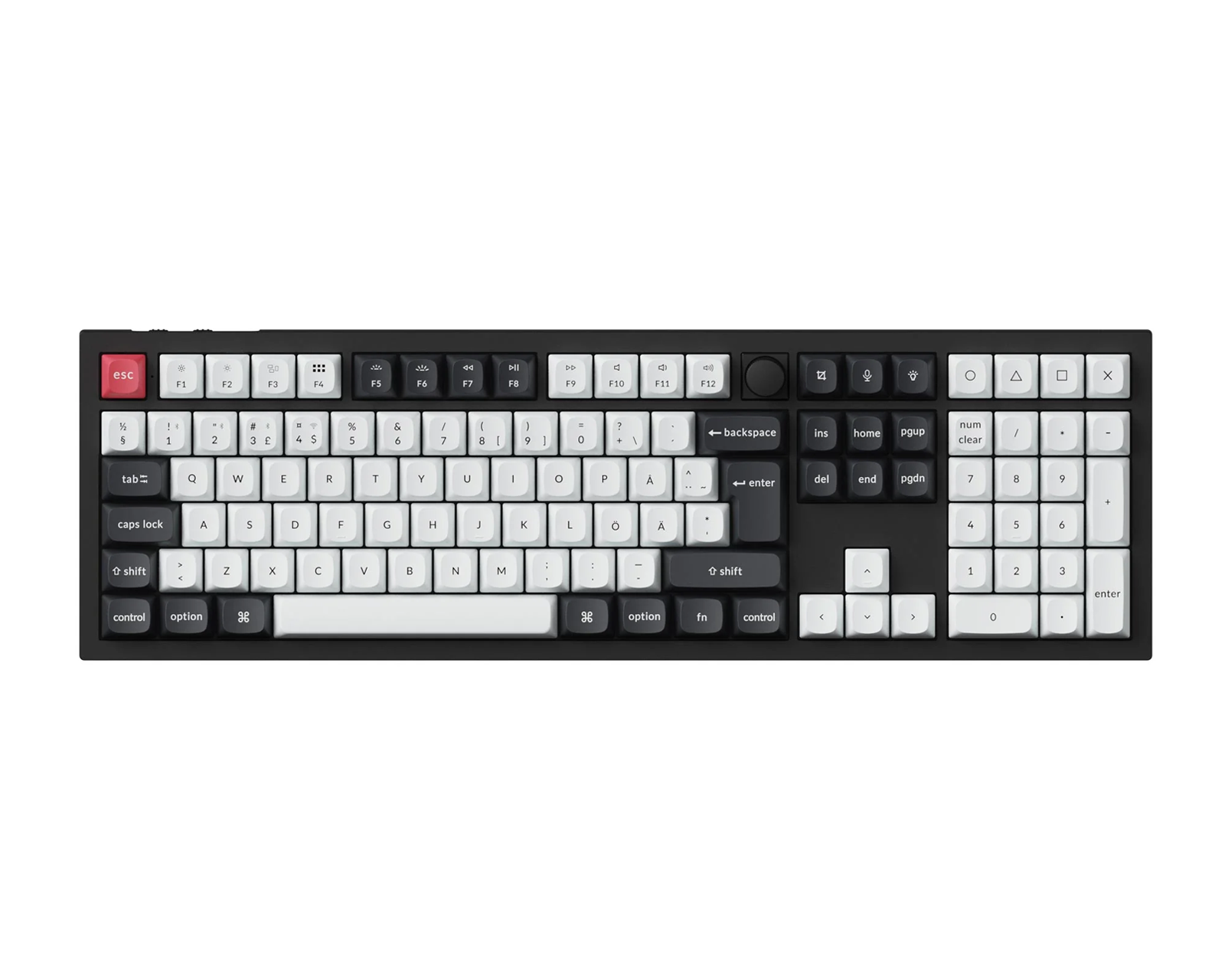 - Tilpasseligt fuldformat tastatur med ISO-layout
