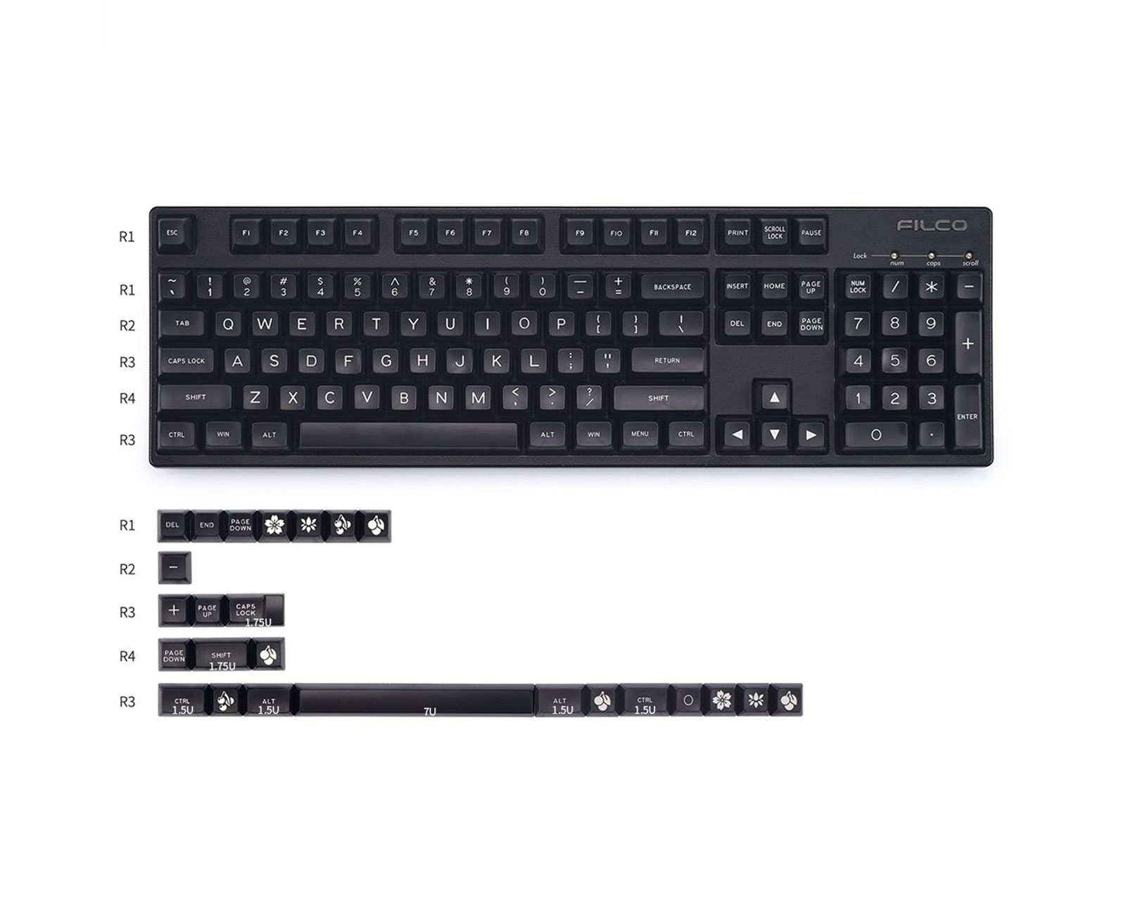 DEMO: Genkøb og testkopier. God stand.Flot hvid på sort sæt i SA profil. Tasterne ser ikke kun godt ud, men de er også lavet af ABS-plast af høj kvalitet og er dobbeltskudt.