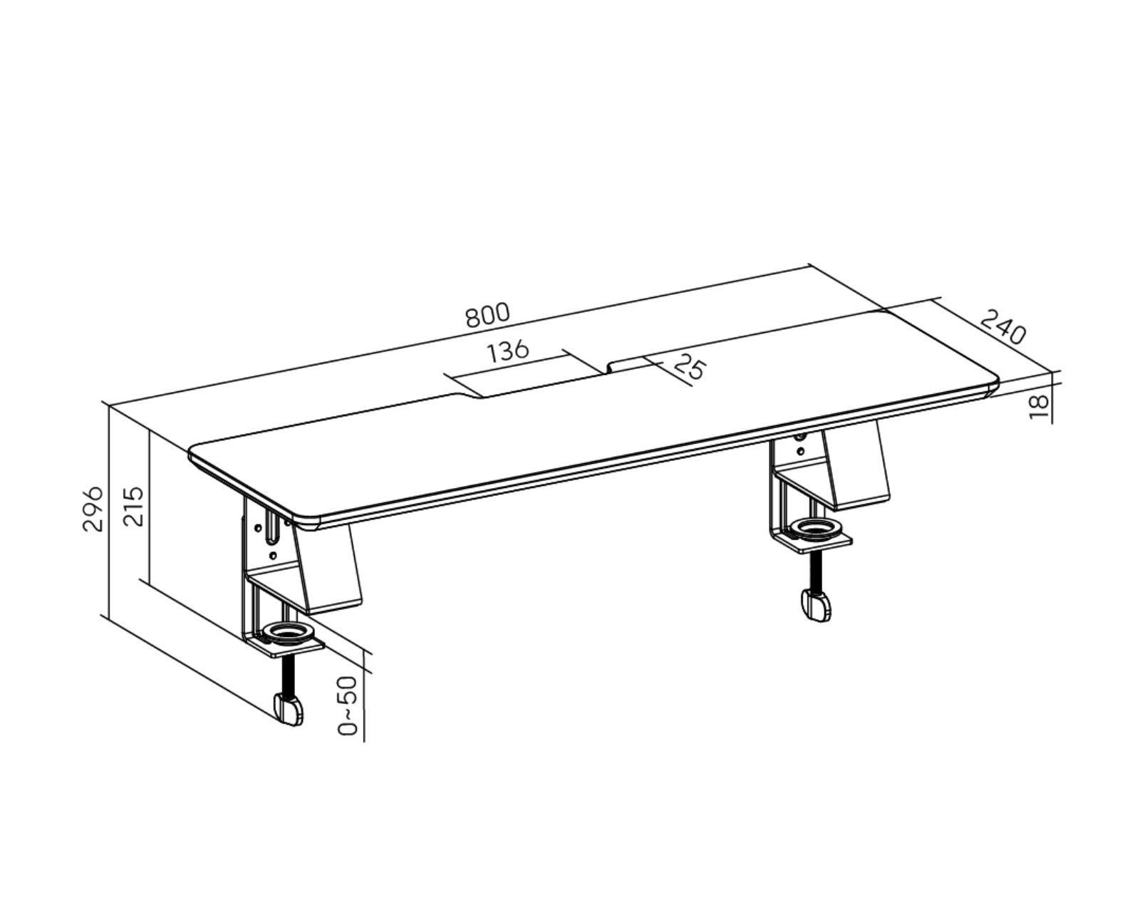 Kompakt skærmstativ med bordbeslag har målene 800x240x296 mm og en overfladetykkelse på 18 mm. Materialerne består af stål og MDF med en pulverlakeret overflade. Stativet har en vægtkapacitet på op til 30 kg pr. lag og er udstyret med klæmfæste for sikker montering på bordet. De beskyttende fødder bidrager til stabilitet og forhindrer ridser på bordets overflade. Kabelhåndteringssystemet letter orden omkring datakablet.