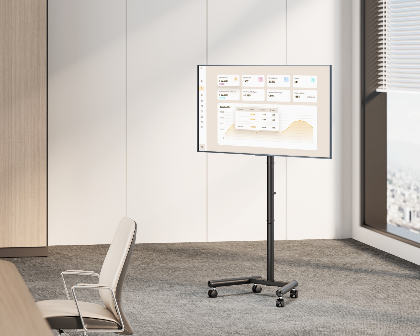 DEMO: Genkøb og testeksemplar. God stand.Kompakt TV-stativ på hjul er et justerbart skærm- og tv-stativ fra MaxMount, som muliggør en fleksibel visningsløsning for skærme i størrelser fra 13” til 50”. Med seks justerbare højder mellem 1080 mm og 1280 mm kan brugeren nemt tilpasse stativet for optimal betragtningsvinkel. Det har et slankt design, der muliggør en pladsbesparende installation, hvilket gør det anvendeligt i både hjemmemiljøer, kontorer og kommercielle miljøer.