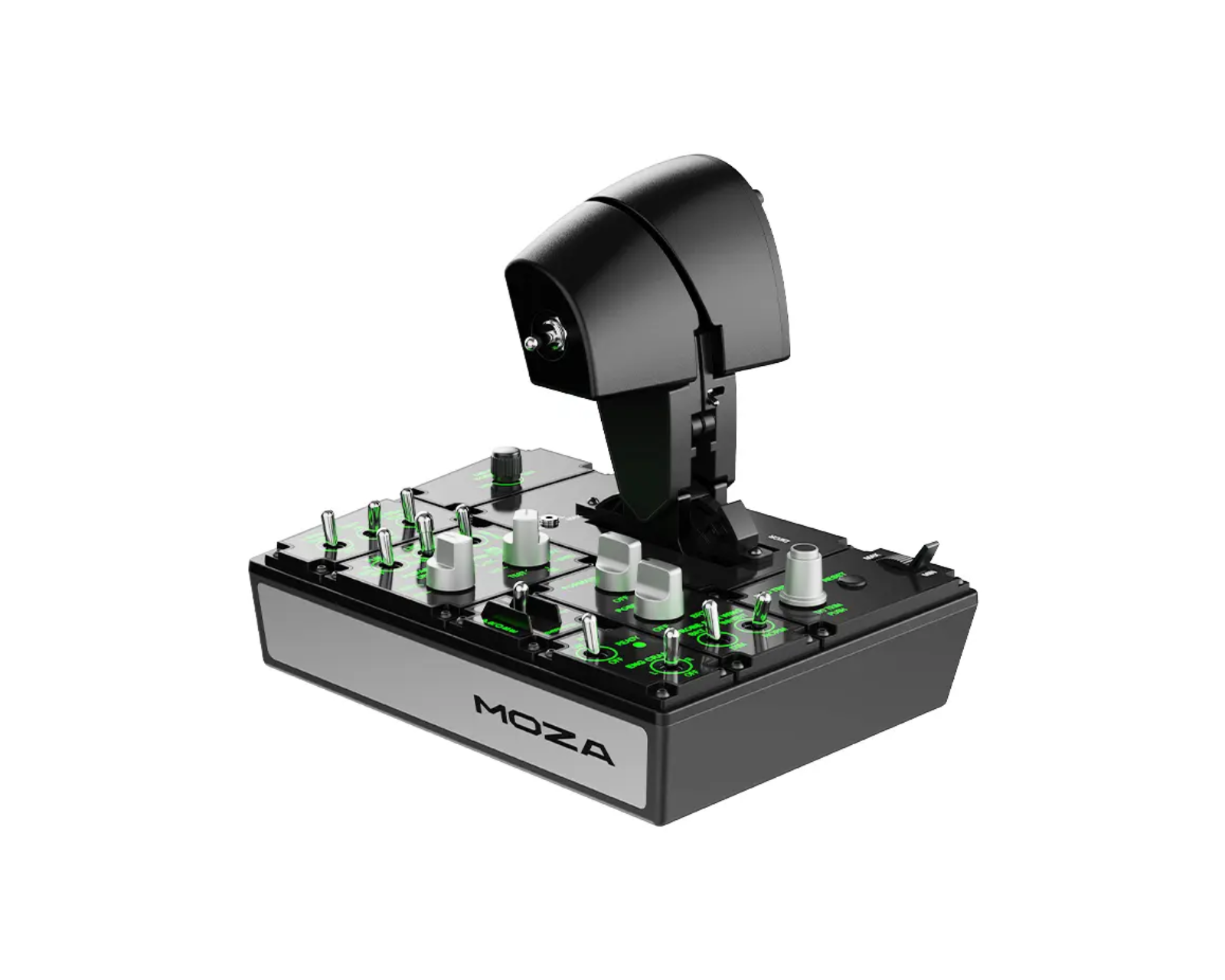 Throttlepanelet er konstrueret med en 15-bits magnetisk encoder, der sikrer blød og præcis throttlekontrol. Det justerbare detent-system lader brugeren simulere specifikke kontroller som efterbrændere og centrale positioner for præcis manøvrering. Vigtige komponenter inkluderer en Hall-effekt joystick, hvis drift er helt uden friktion, samt vibrationsmotorer, der giver feedback ved oplevelsen af aerodynamiske forandringer. Enheden vejer 2,1 kg og har dimensionerne 277x194x216 mm. Vibrationer og belysning kan nemt konfigureres via MOZA Cockpit-softwaren for at skræddersy brugerens indstillinger.
