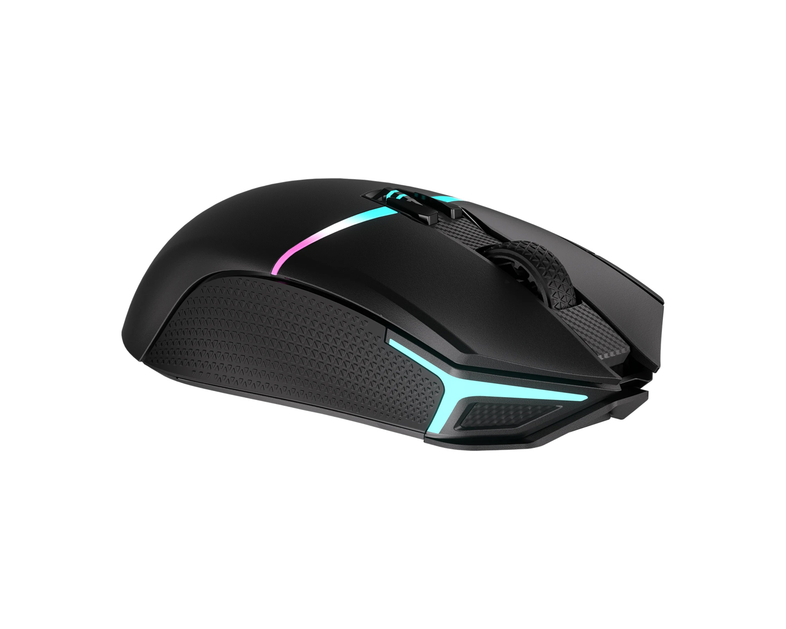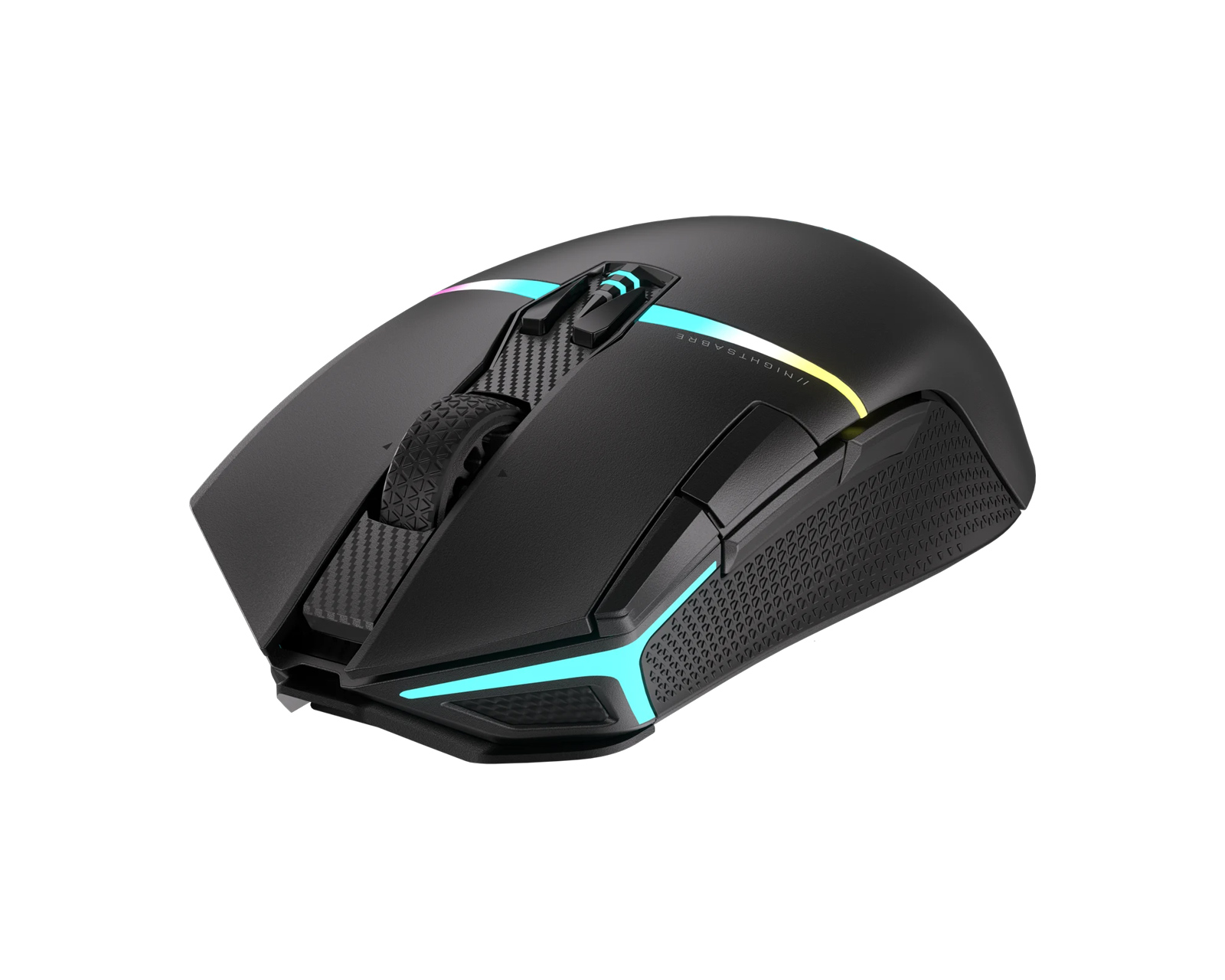 DEMO: Genkøb og prøveeksemplar. God stand.En af Corsairs seneste gamingmus er her, Nightsabre RGB Wireless Gaming Mouse! en trådløs gamingmus, designet til præcision og fleksibilitet. Corsairs MARKMAN-sensor giver en polling-frekvens på op til 2000Hz, hvilket er to gange hurtigere responsrate end hvad du får fra standardmus. Perfekt til førstepersons skydespil som Counter-Strike. Nightsabre har 11 programmerbare knapper og en batterilevetid på 65 timer i 2,4GHz forbindelse, når RGB er slukket. Venstre- og højreklik-knapperne har optiske kontakter, der eliminerer forsinkelse og giver dig mulighed for at angribe dine modstandere med lynets hast.