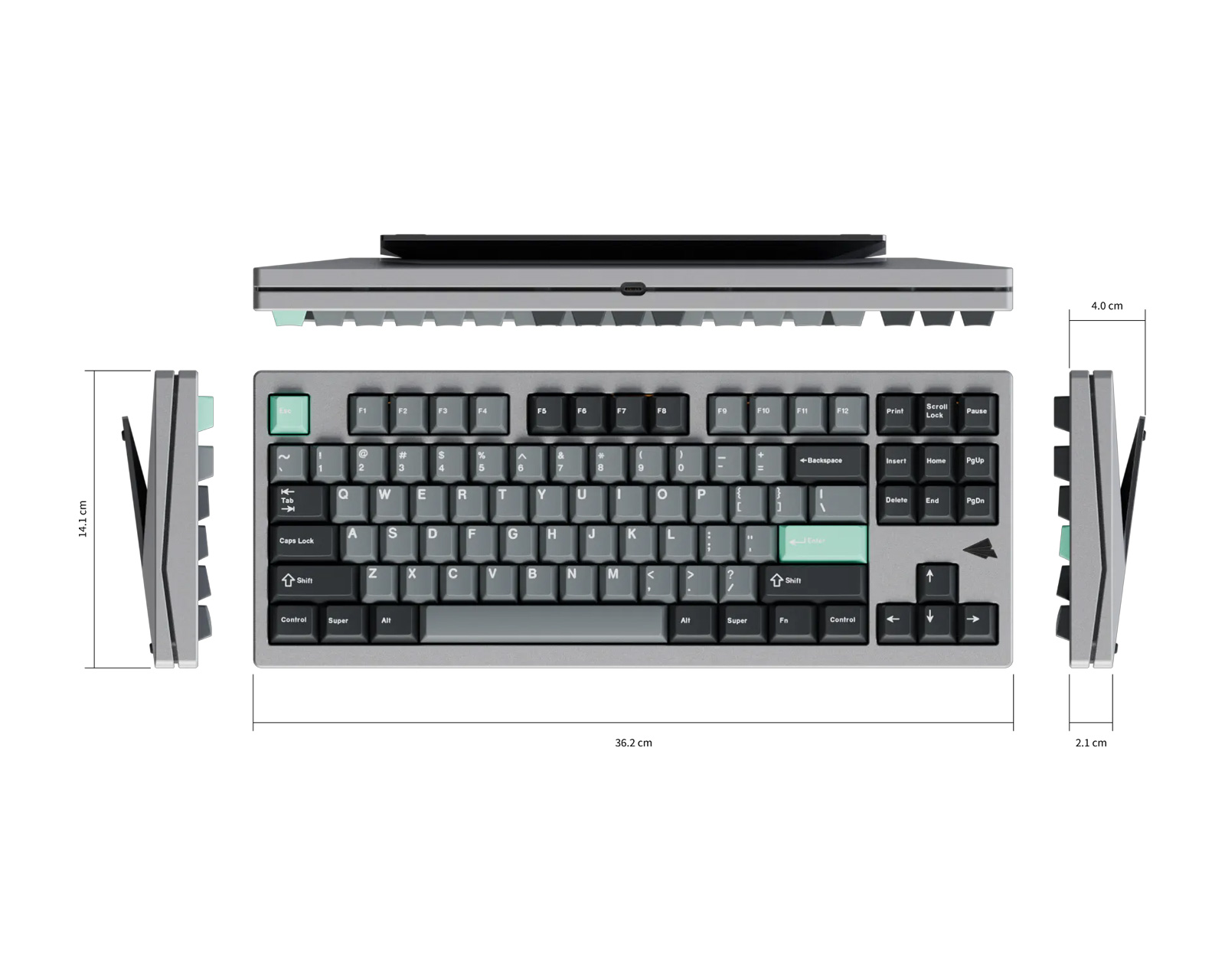 DEMO: Genkøb og prøveeksemplar. God stand.Løft din skriveoplevelse med PAPER80, et tastatur hvor form møder funktion på den mest innovative måde. Inspireret af de yndefulde linjer i et papirfly, er hver eneste detalje på PAPER80 omhyggeligt udformet for at levere både æstetisk glans og overlegen ydeevne. Den fremtrædende svævende foldbelysning i midten skaber ikke kun en beroligende, afbalanceret glød, men harmoniserer også aluminiumskabinettet med præcis belysning. Dette suppleres af det omhyggeligt udformede papirflyvelogo med dets distinkte 3D-folder, der synes at svæve ud fra overfladen. Den specialfremstillede LED-diffusor fremhæver kun de væsentlige designelementer og bevarer den unikke tekstur og karakter af hver linje. Den innovative nøglehulsgummiforsegling er konstrueret med præcision og reducerer tastaturvibrationer, samtidig med at den giver den helt rigtige taktile støtte til en exceptionel oplevelse.