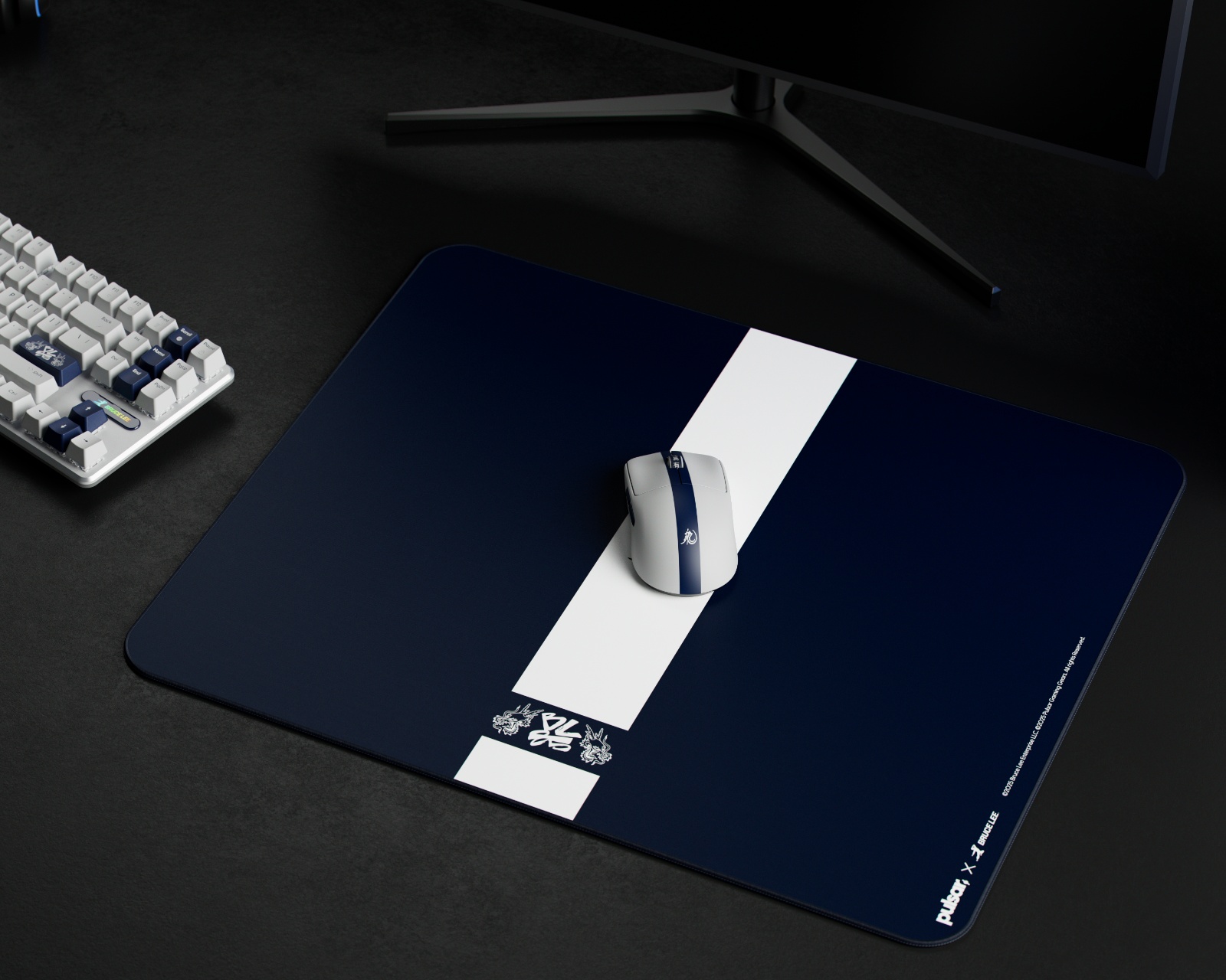 DEMO: Återköp og testeksemplar. God stand.Bruce Lee 85th Edition er en limited edition musemåtte fra Pulsar, der hylder Bruce Lees arv og filosofi i forbindelse med hans 85-års jubilæum. Musemåtten tilbyder en overflade optimeret til høj følsomhed, hvilket giver lav initialfriktion og jævn glid ved mellemstore hastigheder. Med en bredde på 490 mm, dybde på 420 mm og en tykkelse på 3,5 mm er den velegnet til gamere, der søger præcision og hastighed under intensivt spil.
