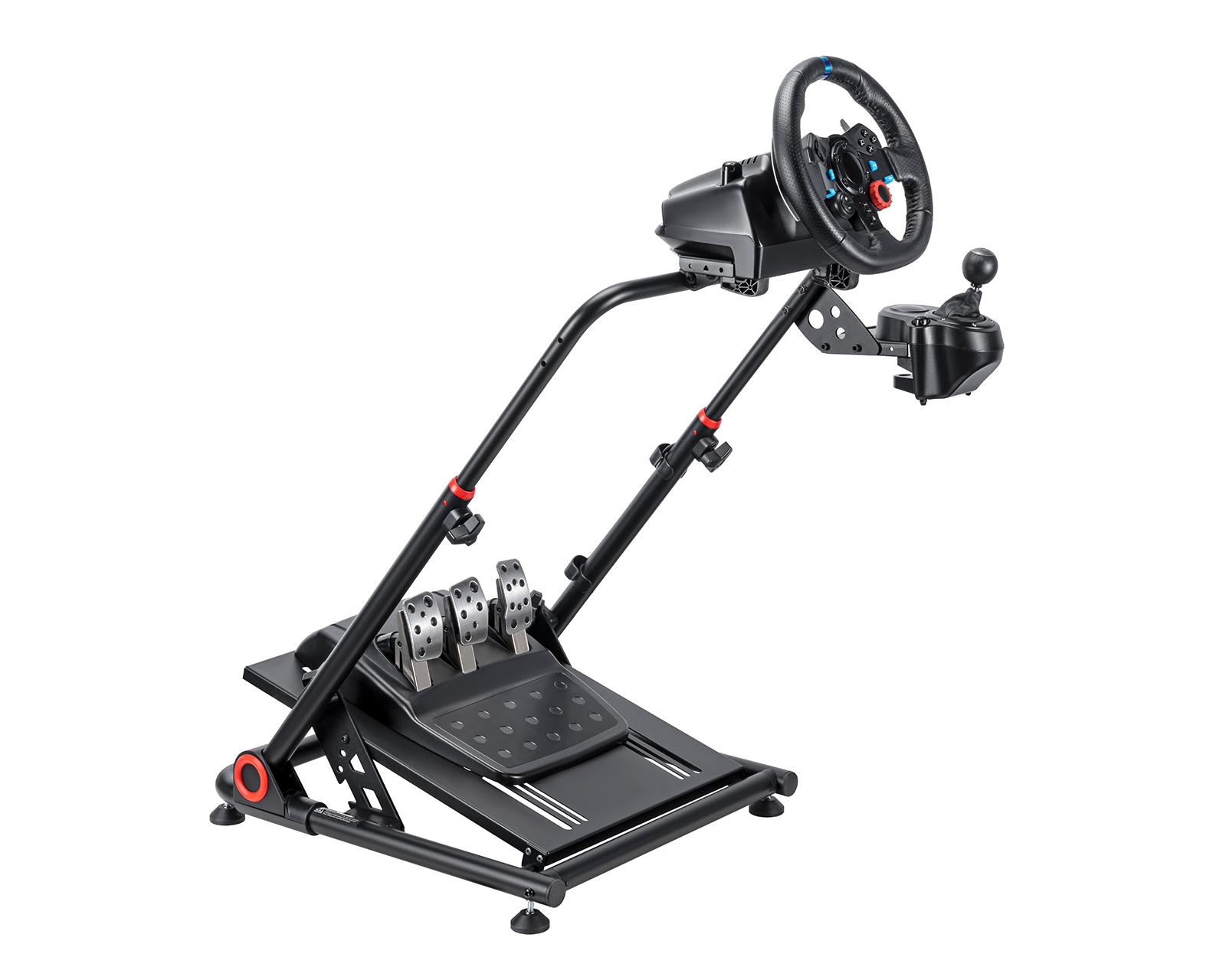 Den justerbare pedalmonteringsplade giver også maksimal støtte, når du krydser målstregen først! Det handler dog ikke kun om komfort, da dets forborede monteringspunkter er kompatible med de fleste rat, skiftere og pedaler, inklusive Logitech, Fanatec, Thrustmaster og mere. Den pulverlakerede finish forhindrer ridser eller rust for længerevarende nydelse, mens dens sammenfoldelige design hjælper med at spare plads, når den ikke er i brug.