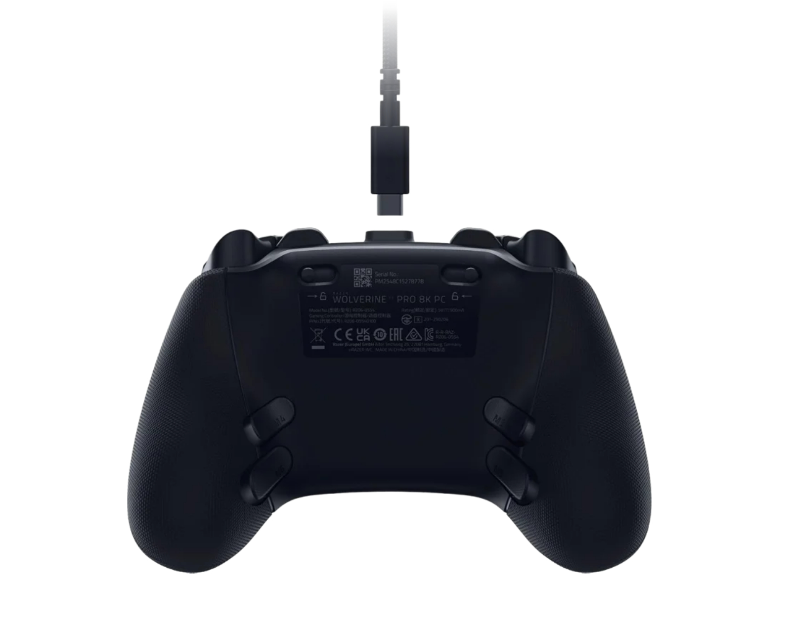 Enheden er udstyret med TMR-styrkors med udskiftelige toppe, hvilket gør det muligt for brugeren at vælge mellem korte og lange spaker for tilpasset hastighed og præcision. Razer Wolverine V3 Pro 8K udnytter 8K Hz HyperPolling-teknologi for at muliggøre ekstremt lav latens og hurtig respons både i kabeltilsluttet og trådløs tilstand. Den er udstyret med mekaniske taktile knapper og en otte-vejs flydende D-pad for hurtige og præcise tryk. Razer Synapse 4-softwaren muliggør tilpasninger af knapper og profiler for at skræddersy spiloplevelsen.