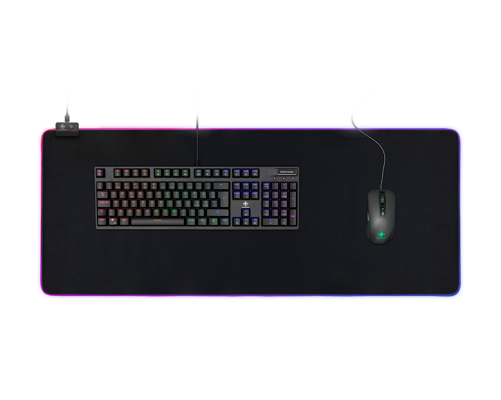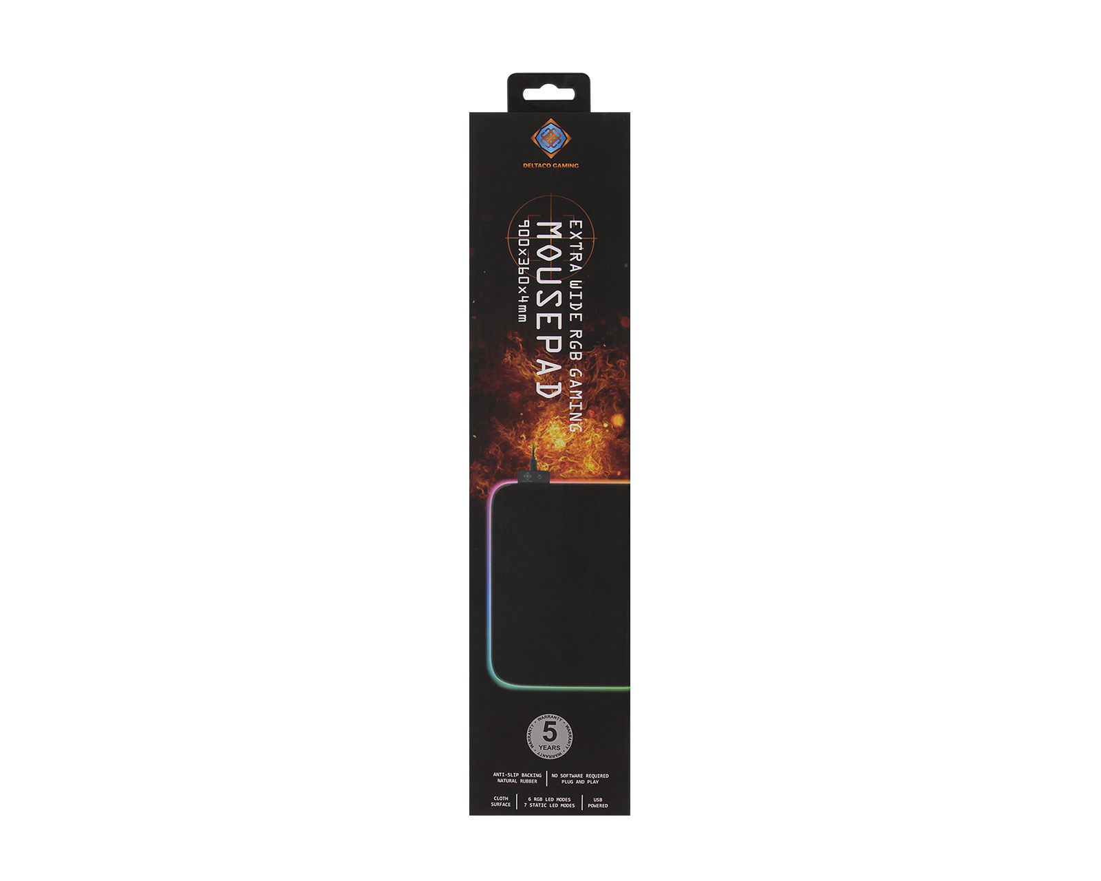 DEMO: Återköp och testexemplar. Bra skick.Gaming musemåtte med RGB-belysning på siderne. Overdelen er lavet af behageligt stof for en blød og præcis bevægelse med din mus. RGB-belysningen styres med en simpel knap i øverste venstre hjørne, der skifter mellem de forskellige lystilstande. Der kræves ingen software, men belysningen er fuldstændig plug and play, måtten er forbundet til din computer eller en USB strømkilde (5V 100mA mindst) via det 1,5m medfølgende USB-A - Micro-B kabel. I bunden af musemåtten finder du naturgummi til at holde musemåtten sikkert på plads.