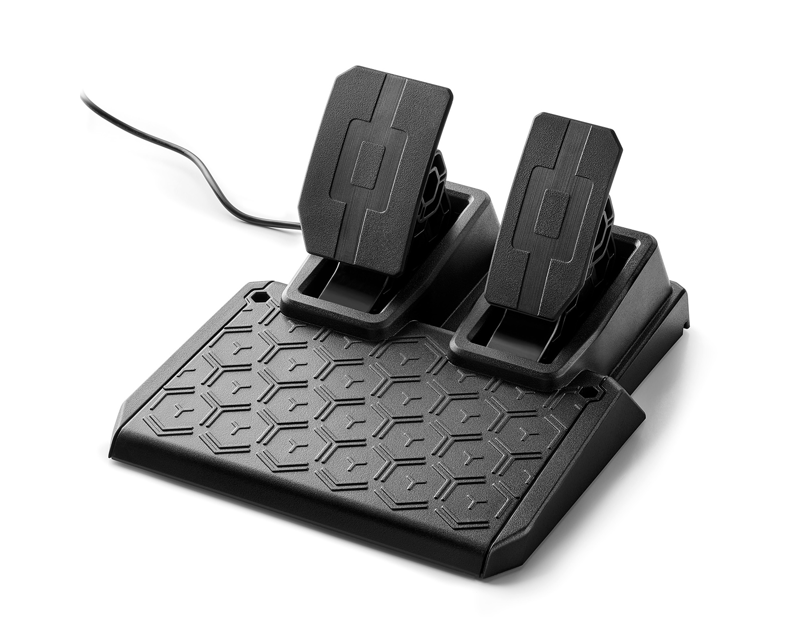 Håndbremseknapper er let tilgængelige på rattet, så du nemt kan udføre kontrollerede manøvrer. Og med det hurtige fastgørelsessystem kan du nemt sætte rattet op på skriveborde og borde, der er op til 5,5 cm tykke. For den ultimative raceroplevelse kan du kombinere T128 med T2PM 2-pedal magnetiske pedalsæt, der har 12-bit præcision (patenteret HEART-teknologi).