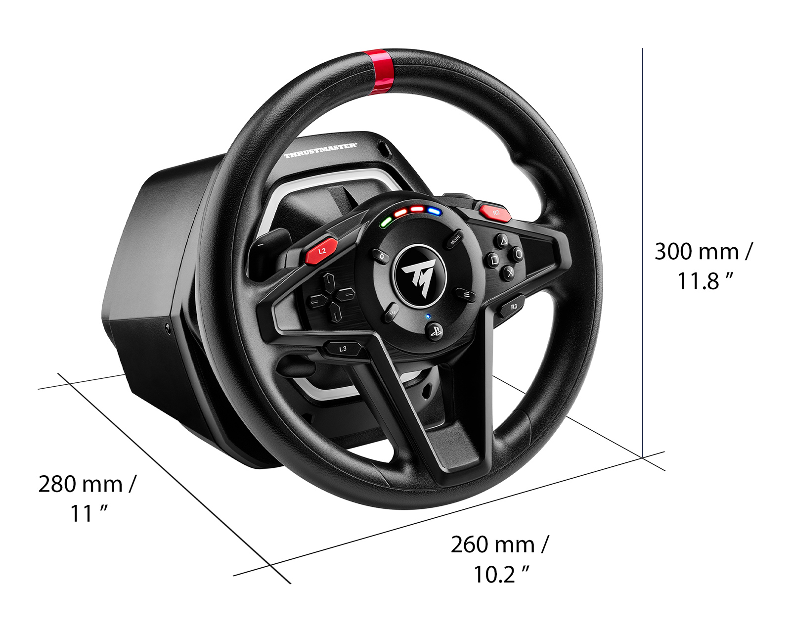 DEMO: Genkøb og testkopier. God stand.Thrustmaster T128 Racing Wheel til PS5 og PC er den perfekte måde at tage dine kørefærdigheder til et helt nyt niveau. Med HYBRID DRIVE power-feedback mærker du alle nuancer af vejen, mens du skynder dig rundt om hjørner og overhaler dine rivaler. Det moderne design og rotationsvinkel på op til 900° passer til alle typer køretøjer og spil, mens de magnetiske paddle shifters giver øjeblikkelig respons og en klar skiftende følelse.