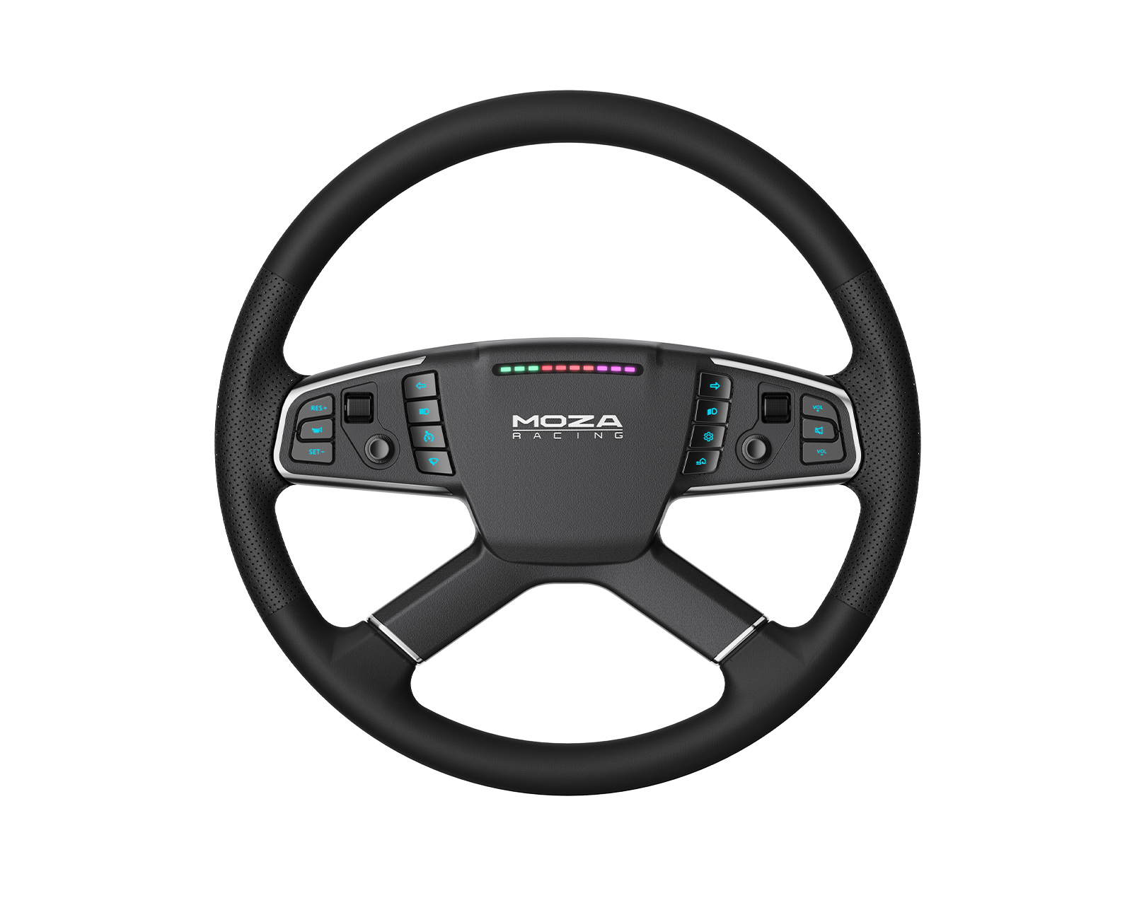 Med tilpasselige RGB-knapper og LED-lys kan du tilpasse den til din smag. Den er kompatibel med alle MOZA-baser og andre systemer med en universel adapter, hvilket gør den til en perfekt pasform overalt. TSW Truck Wheel er det ultimative valg for simulationsentusiaster, der søger en virkelighedstro køreoplevelse med dybde og funktionalitet.