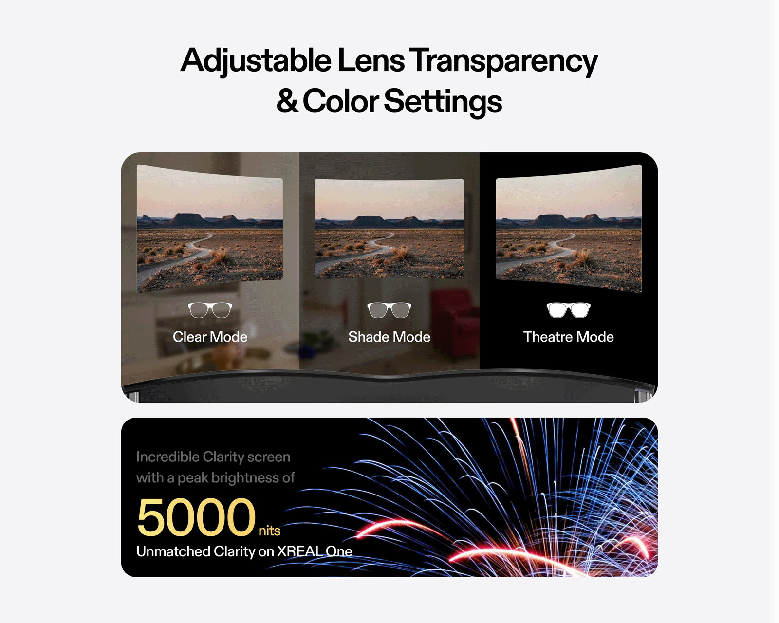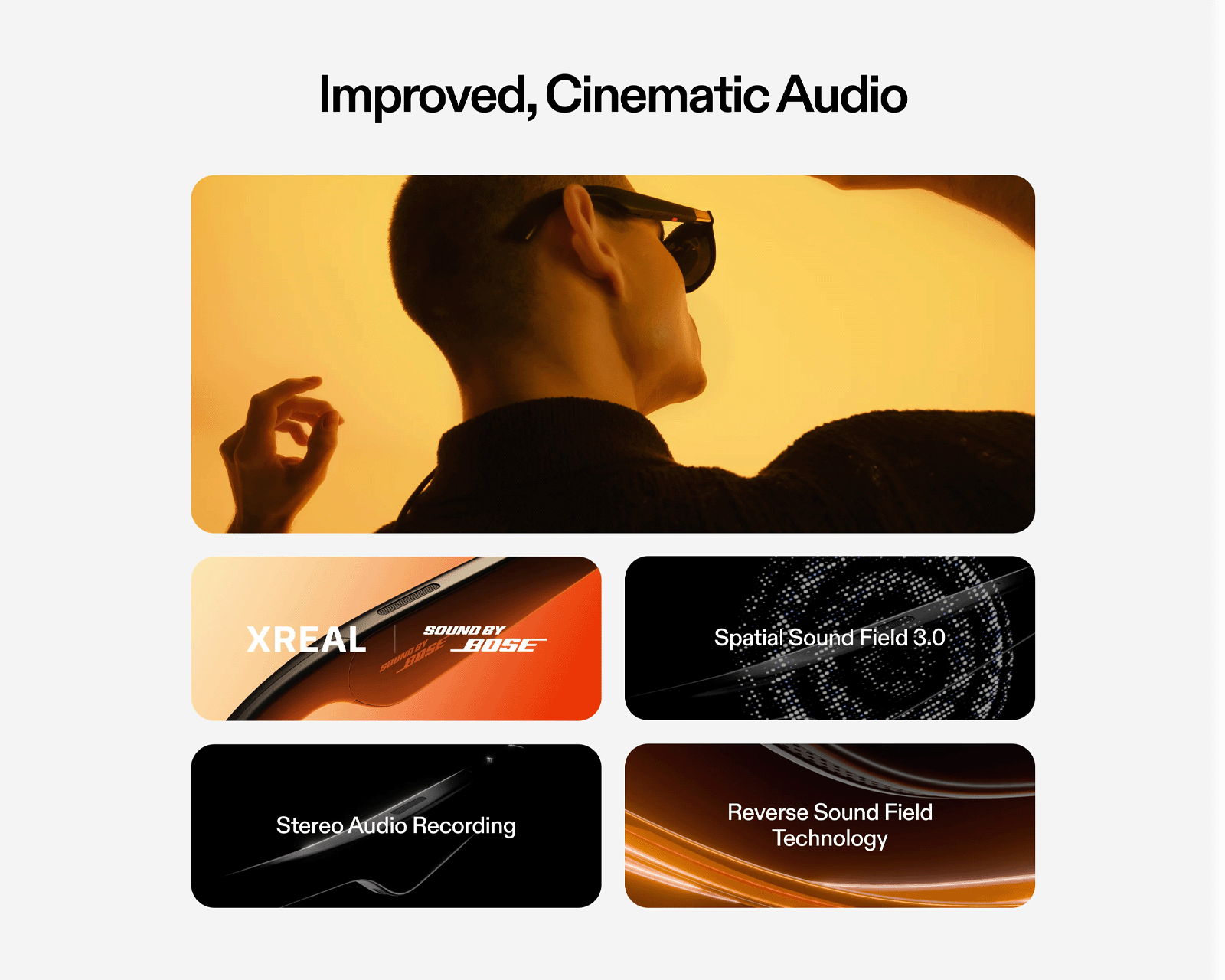 XREAL Ones 0.68-tommers Sony Micro-OLED-skærm leverer et krystalklart virtuelt billede så stort som en 147-tommers projektionsskærm. Lydoplevelsen er desuden optimeret af Bose for at give nuanceret og velafbalanceret lyd, hvilket skaber en helhedsoplevelse, der revolutionerer din medieforbrug. Perfekt til gaming er brillerne udstyret med en opdateringsfrekvens på op til 120 Hz for en sømløs og realistisk spilleoplevelse. XREAL One er også kompatibel med en række enheder som iPhone, Android, MacBook, Steam Deck og Nintendo Switch, hvilket gør det til en alsidig følgesvend i hverdagen.