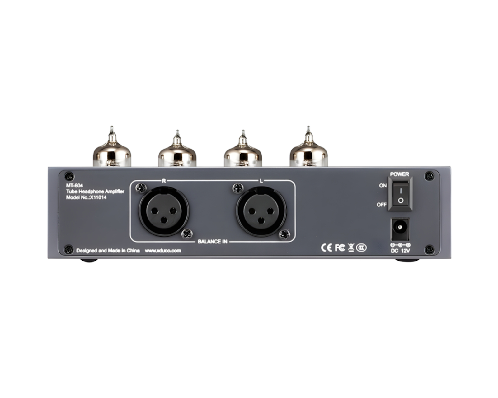 MT-604 fra XDUOO, designet til at levere høj kvalitets lydpræstation. Den er udstyret med både XLR og 4,4 mm balanceret ind- og udgang, hvilket gør, at den kan håndtere en række forskellige lydanordninger med høretelefonudgangsimpedans mellem 16 ohm og 600 ohm. Udgangeffekten er op til 2000 mW, hvilket gør, at den nemt kan drive de fleste hovedtelefoner på markedet.Byggekvaliteten er høj, og fokus er på at kombinere fordelene ved rør- og transistorforstærkning. MT-604 bruger fire 6J1-rør til forforstærkning, hvilket bidrager til en sød og nuanceret lyd. Transistorbuffer-systemet, baseret på klasse A-teknologi, muliggør en høj udgangseffekt, som gør den ideel til brug med både følsomme og krævende hovedtelefoner. Desuden har den en indbygget mute-circuit for at eliminere kliklyde ved opstart og sikre, at rørene altid fungerer optimalt.