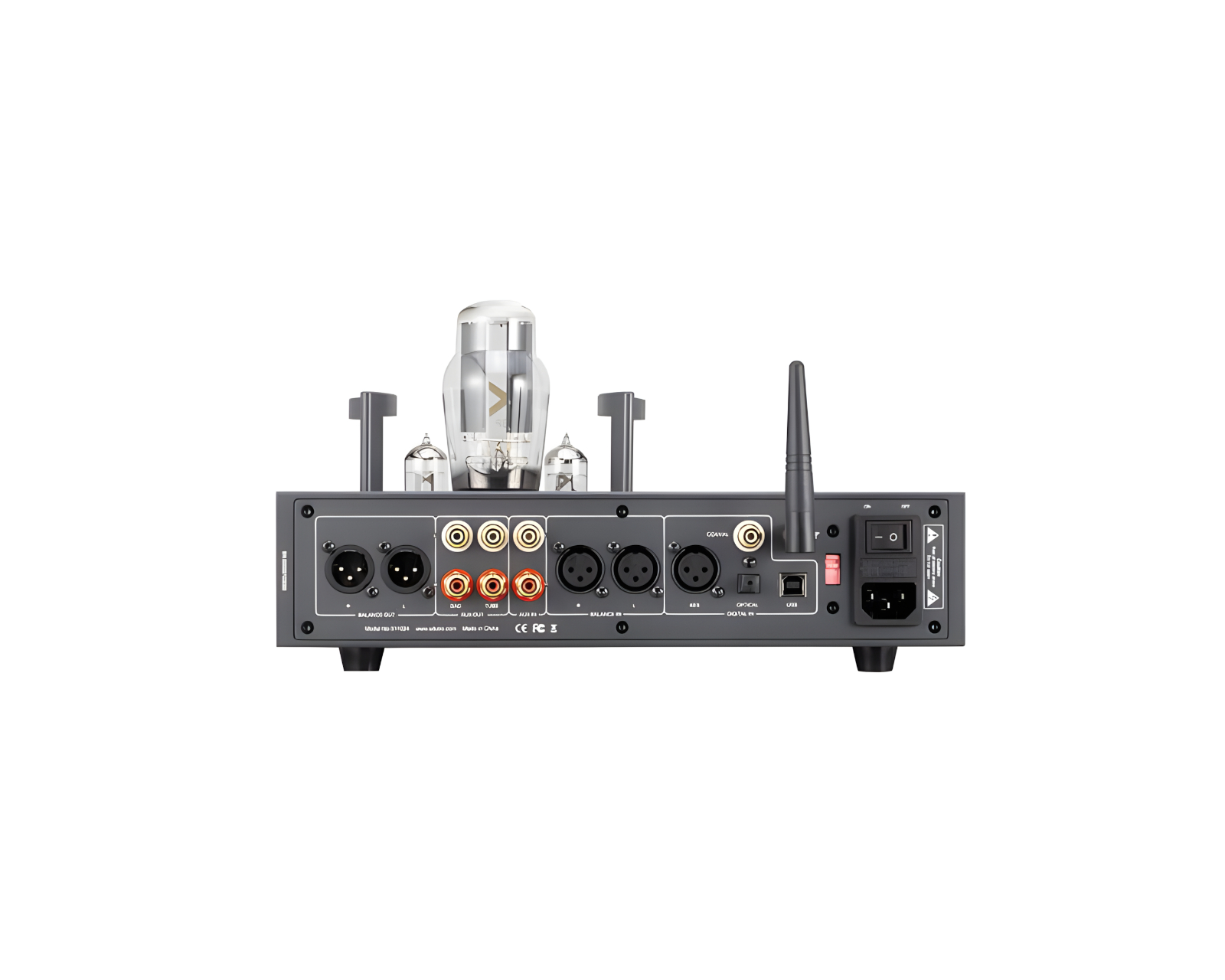 TA-32 er en DAC og rørforstærker fra xDuoo, som kombinerer rørteknik og solid state-komponenter. Denne hybridforstærker kan levere op til 3000 mW ved 32Ω, hvilket gør den velegnet til både letdrevne IEM-hovedtelefoner og højimpedansmodeller. Med digitale indgange inklusive USB, coaxial, optisk og Bluetooth tilbyder den fleksibilitet til tilslutning til flere typer enheder.Denne enhed bruger et 5U4G-vakuumrør til ensretning og to matchende Ray Tubes 12AU7 CORE for varme i mellemtone og diskant. Det klasse A-transistortrin garanterer stabilt strømflow og bidrager til en lydgengivelse med detaljeret og varm klang. TA-32's modulære DAC-design gør det muligt nemt at udskifte DAC-kortet for at skræddersy lydprofilen. Standard DAC-kortet er ROHM BD34301, men en separat AK4499EX-modul er også kompatibel. Forstærkeren fungerer også som en forforstærker i et stereosystem.