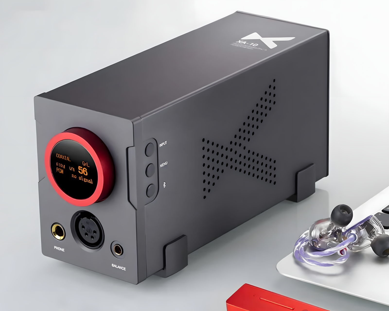 Xduoo XA-10 er en hovedtelefonforstærker fra Xduoo, som kombinerer avanceret lydteknologi for høj kvalitetslydafspilning. Den er udstyret med to DAC-enheder og forstærkerprocessorer, hvilket effektivt eliminerer uønsket støj og reducerer baggrundsstøj. Med flere udgangsmuligheder og kapacitet til DSD, DXD og MQA-format giver XA-10 en imponerende lytteoplevelse.Enheden er bygget til at levere høj lydkvalitet med en effektivitet, der understøtter op til 4000 mW gennem 4-pin XLR-udgangen samt 3000 mW via 6.3 mm jack. XA-10 tilbyder også intern DA-konvertering og håndterer samplingsfrekvenser op til 32bit/768kHz, hvilket muliggør exceptionel lydreproduktion. Tilslutningerne inkluderer AUX, Bluetooth, Coaxial og Optisk, hvilket giver alsidighed i brugen. Det grå chassis giver et stilrent aspekt til den robuste konstruktion.
