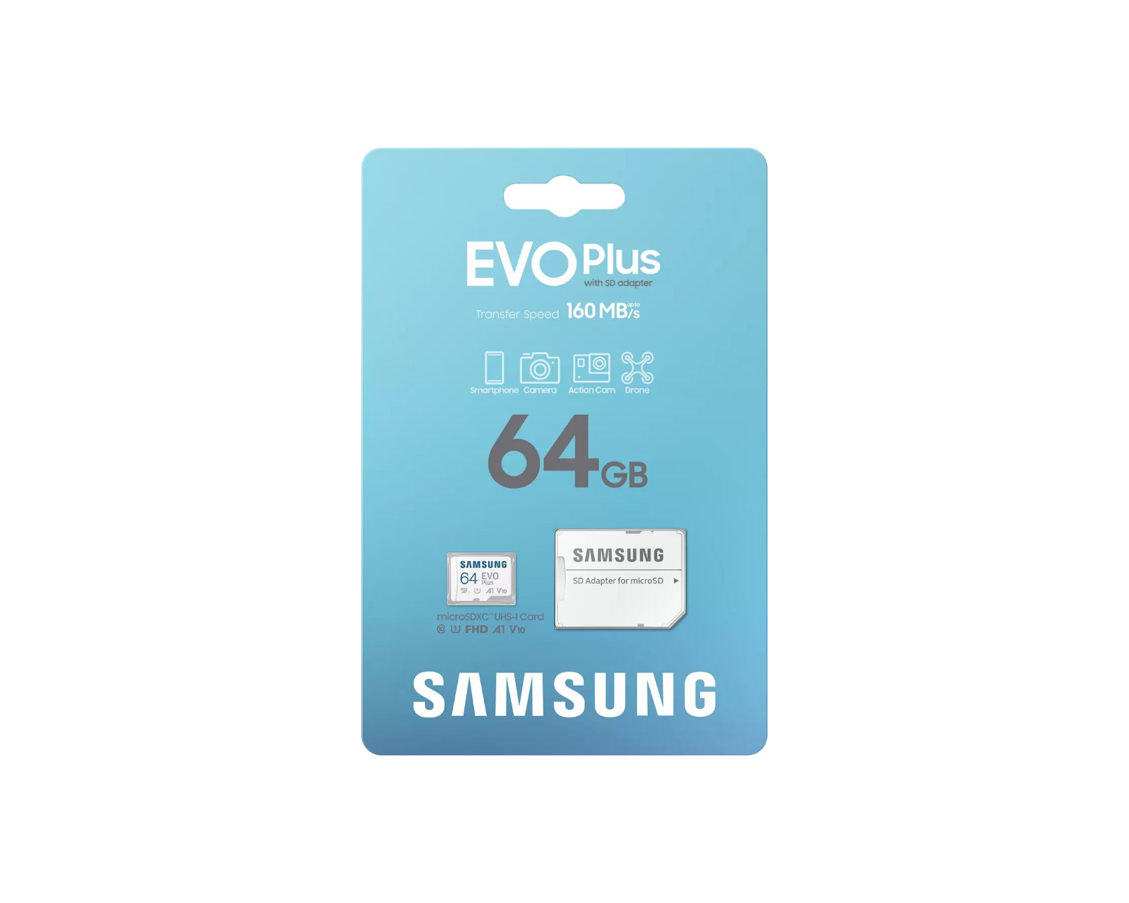 MicroSD EVO Plus 64GB er et microSDXC-hukommelseskort fra Samsung, designet til at tilbyde hurtig og pålidelig opbevaring. Med en kapacitet på 64GB er det egnet til at gemme en stor mængde medier, herunder højopløselige billeder og 4K-videoer, hvilket giver en glat brugeroplevelse. Den imponerende overførselshastighed på op til 160 MB/s sikrer, at filer overføres hurtigt og effektivt, uanset om du bruger det til din smartphone, tablet eller bærbare computer.Samsung har prioriteret byggekvalitet og funktionalitet i EVO Plus. Kortet er kompatibelt med et bredt udvalg af enheder, hvilket gør det til en alsidig løsning for gamere og multimedieentusiaster. Med U3, klasse 10-certificerede overførselshastigheder og en App Performance-klassificering af A2, kan brugere forvente optimal ydeevne ved brug af apps og afspilning af høj kvalitet indhold. EVO Plus er også udstyret til at klare ekstreme forhold, inklusive høj vandmodstand og beskyttelse mod stød og magnetisk påvirkning.