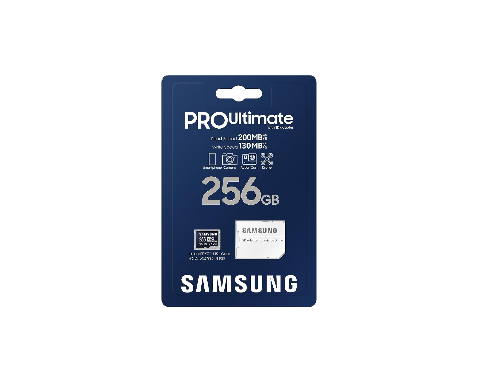 MicroSD PRO Ultimate er et højtydende hukommelseskort fra Samsung, designet til at imødekomme behovene hos gamere og kreative. Med en imponerende lagerkapacitet på 258 GB muliggør dette kort lagring af op til 7,5 timers 4K/UHD-video eller 67.518 fotos i FHD. Udstyret med en læsehastighed på op til 200 MB/s og skrivehastighed på 130 MB/s, er dette kort perfekt til smartphones, droner og actionkameraer.PRO Ultimate-kortet tilbyder robusthed og alsidighed, med seks beskyttelsesfunktioner inklusive vandtæthed, temperaturbestandighed, røntgensikkerhed og stødsikkerhed. Det har en størrelse på 15 x 11 x 1 mm og vejer kun 0,26 g, hvilket gør det både let og nemt at bære. Med sin UHS-I U3-klassificering garanterer det høj hastighed til 4K/UHD og seriefoto, hvilket gør, at brugere kan fange og lagre de mest intensivt detaljerede øjeblikke uden at gå på kompromis med ydeevnen.