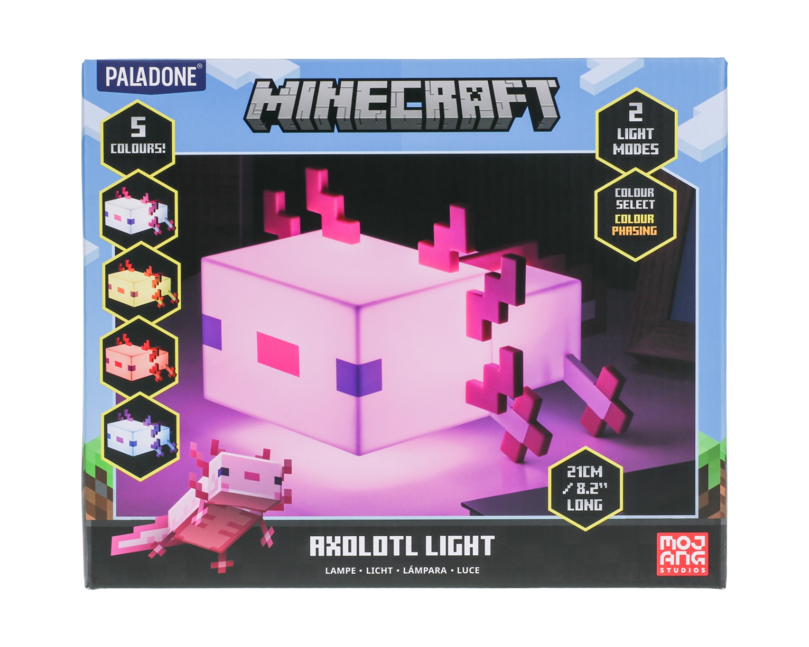 Saml alle dine samleobjekter med Paladone Light. Disse popkulturlamper spænder over flere licenser og produktkategorier, inklusive Minecraft, Nintendo, The Legend of Zelda, Star Wars, Marvel og mange flere. Lamperne passer til både ivrige superfans og afslappede entusiaster.Det iøjnefaldende design er lavet af højkvalitets støbt plastik og har stilfulde detaljer, der vækker lampen til live. Minecraft Axolotl Lampen er officielt licenseret og er en fantastisk tilføjelse til enhver fans eller spilleentusiasts hylde eller skrivebord.