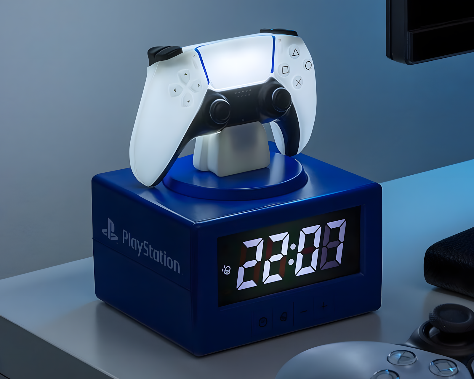 Playstation Controller Icon er en vækkeur fra Paladone, som kombinerer funktionalitet med et ikonisk design. Dens klare display gør det nemt at se tiden fra forskellige vinkler, hvilket er praktisk for alle gamere, der ønsker en stilren og informativ detalje i deres værelse. Med en højde på cirka 18 cm er dette vækkeur en perfekt ledsager på natbordet eller i spillestuen. Den er officielt licenseret og udgør en fantastisk gave til både spilentusiaster og PlayStation-fans. Vækkeuret drives af 3x AA-batterier (medfølger ikke).Oversigt