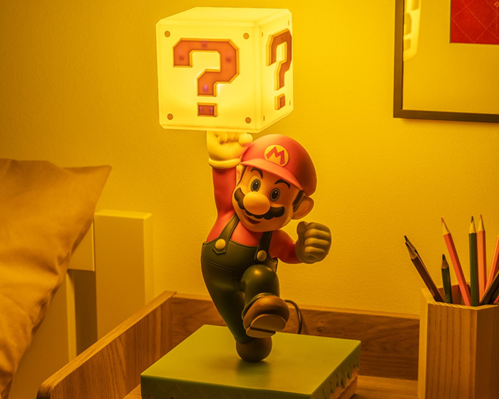 Super Mario Diorama Lampe er en unik lampe fra Paladone, som kombinerer stil og funktionalitet. Med en højde på 35 cm (13.8") er den designet i formen af den velkendte mustaschprydede helt og spiller den officielle lydsignal, når den tændes. Lampen tilbyder tre lysstyrker, hvilket gør det nemt at skabe den perfekte atmosfære i dit hjem. Den kan nemt strømforsynes via USB med et medfølgende kabel.Bygget med fokus på både kvalitet og æstetik er Super Mario Diorama Lampe et officielt licenseret Nintendo-produkt. Den fremstillede konstruktion gør den til en holdbar og pålidelig indretningsdetalje, mens de tre forskellige lysstyrker giver brugerne fleksibilitet til at tilpasse belysningen efter behov. Isoleringen og komponenterne er af høj kvalitet, hvilket gør, at lampen både lyser klart og ser godt ud, uanset om den anvendes i stuen eller i et spilleværelse. Det er nemt at veksle mellem lysstyrkerne ved at banke på lampen.