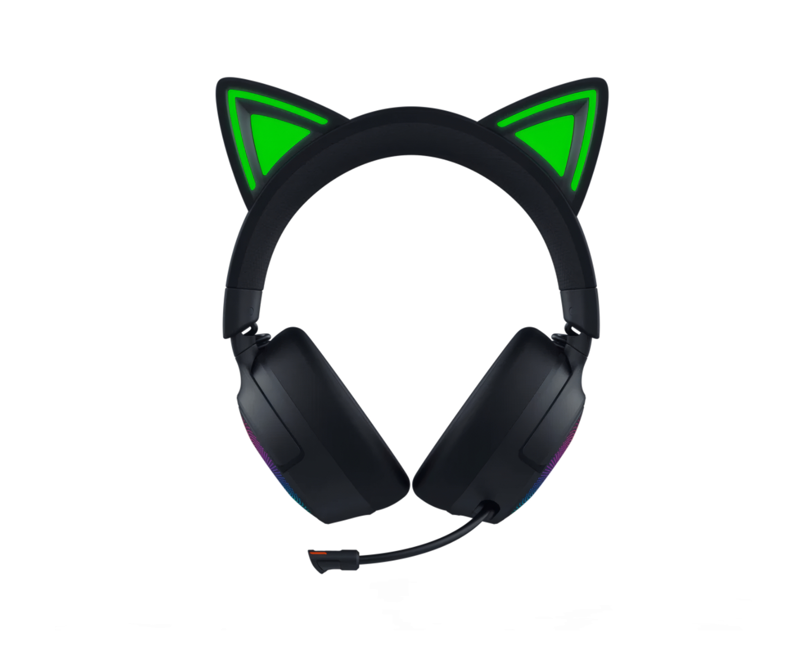 Kraken Kitty V3 Pro er et trådløst gaming headset fra Razer, designet med karakteristiske katteører og Razer Chroma™ RGB-belysning. Det tilbyder tre forskellige tilslutningsmuligheder, inklusive 2.4 GHz og Bluetooth 5.3, samt en superbred mikrofon til klar lydgengivelse. Dette headset henvender sig til gamere, der søger stil og funktionalitet under spiloplevelsen.Headsettet har ørepuder i proteinlæder med memory foam for øget komfort og lydisolering. Den fleksible og aftagelige Razer™ HyperClear mikrofon har en bred frekvensrespons, hvilket gør, at brugerens stemme gengives tydeligt. Razer™ TriForce Titanium 40 mm-drivere giver en lytteoplevelse med distinkte høje toner, jævne mellemtoner og dybe baslyde, hvilket resulterer i et klart og balanceret lydbillede. Enheden understøtter THX Spatial Audio for 7.1 surroundlyd, hvilket giver en mere immersiv spiloplevelse.